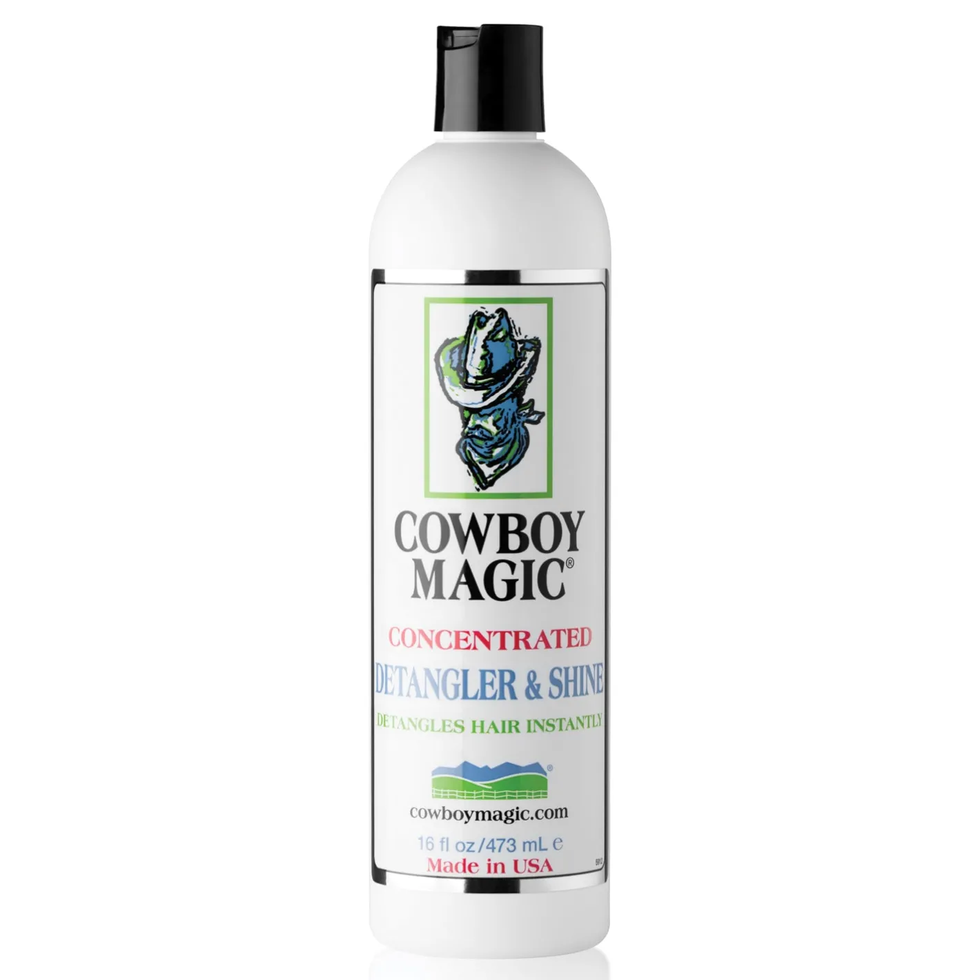 Cowboy Magic® Detangler & Shine is a concentrated, deep conditioning, leave-in detangler with silk protein added. It contains no drying water or alcohol and leaves hair manageable, lustrous and with long-lasting shine.