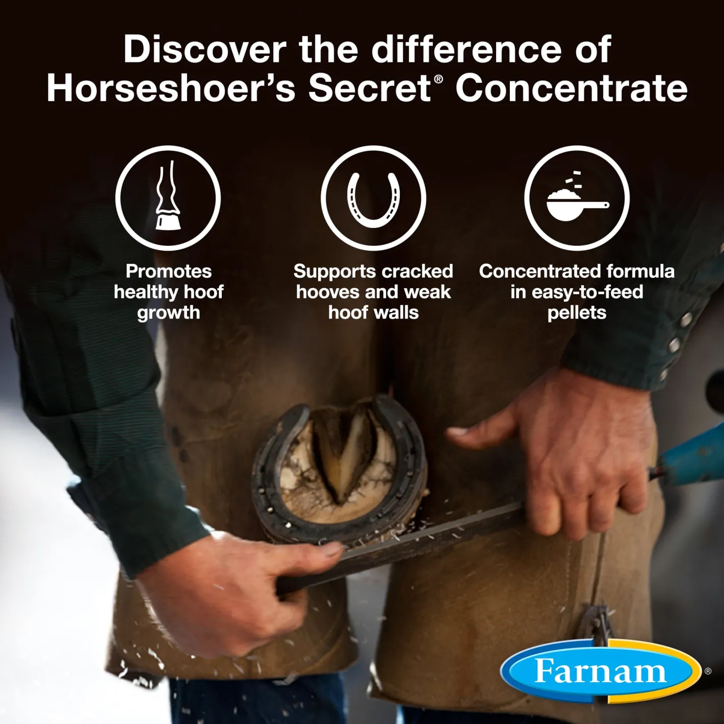 Farnam® Horseshoer’s Secret® Concentrate Pelleted Hoof Supplement offers nutrients necessary for the growth of healthy hooves in horses. Made in the USA, this concentrated, easy-to-feed and palatable formula contains 25mg of biotin per 2-ounce serving.
