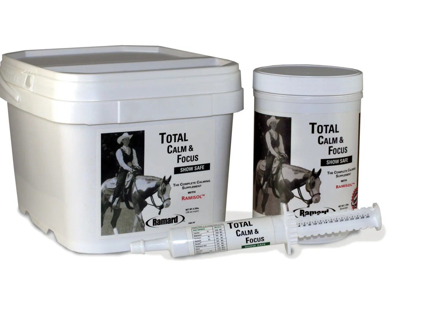 Ramard™ Total Calm & Focus is an all-natural supplement developed to calm nervous, anxious horses while enhancing focus. It contains Ramisol to help prevent the increase of cortisol, a stress hormone released in response to high intensity. Magnesium and a balanced blend of B vitamins are also added, which have been shown to be effective in nervous, hyper horses. Mint-flavored paste in an oral syringe.
