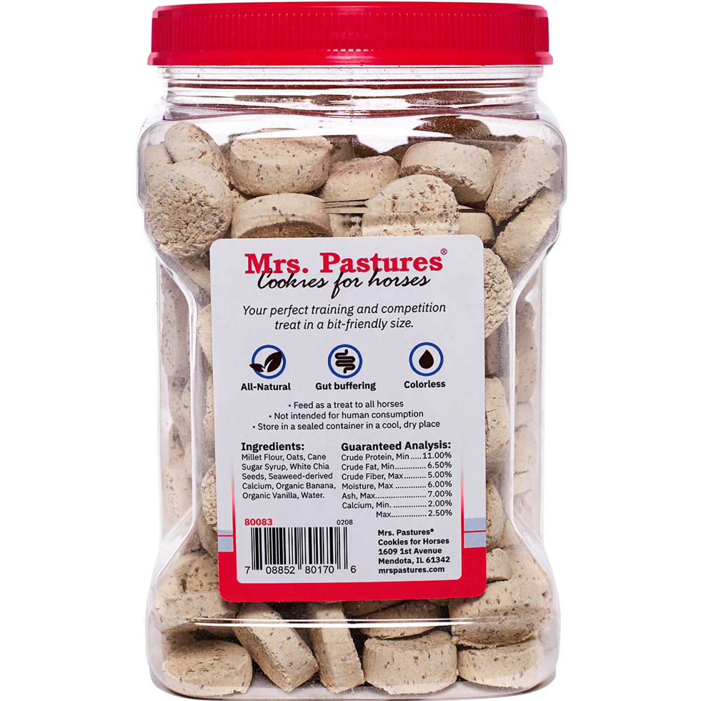 Mrs. Pastures Ring Ready Cookie has been nourishing the bond between humans and horses since 1986. Ring Ready is specifically designed to be fed before or during riding. Its colorless appearance keeps you and your horse looking “Ring Ready.” Designed with horses in mind, this cookie features gut-buffering technology to help horses cope with stress.