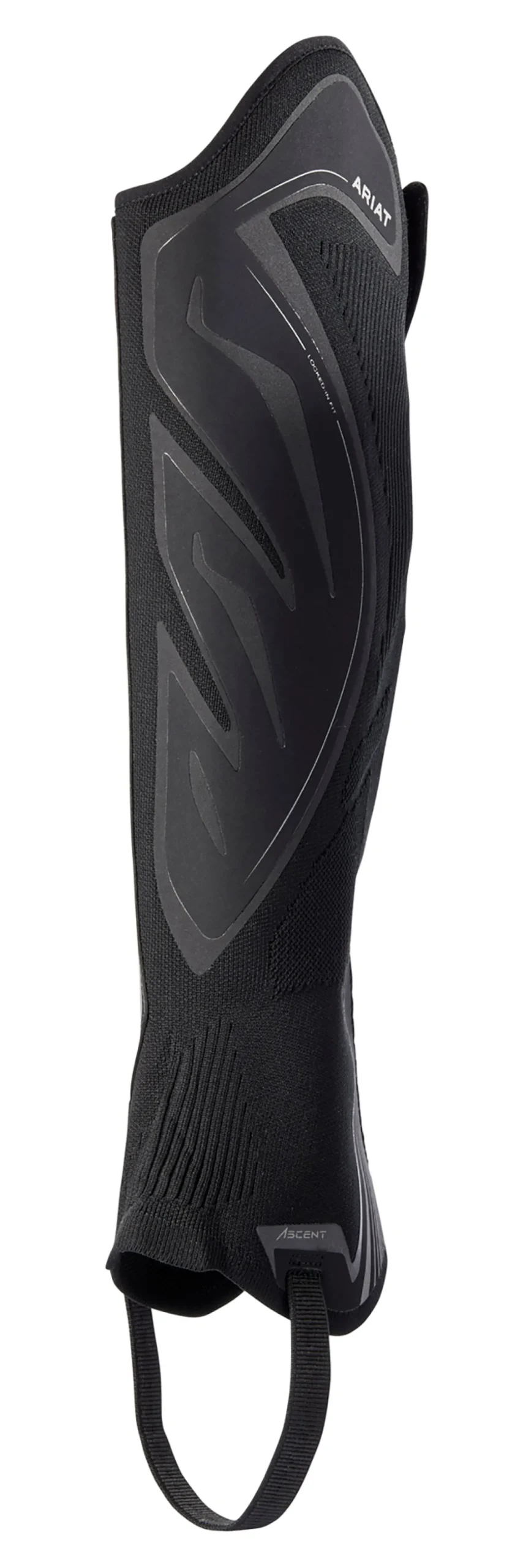 Offering a sock-like fit for close contact, this Ariat® Ascent Half Chap features unlined knit construction in synthetic material with mesh for breathability. No-sew overlay and inner calf reinforcement panel. Full-length YKK® back zipper with keeper. Flexible knit skirt over instep. Pair.