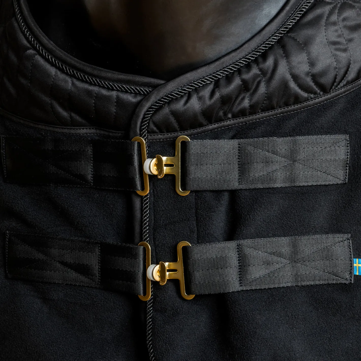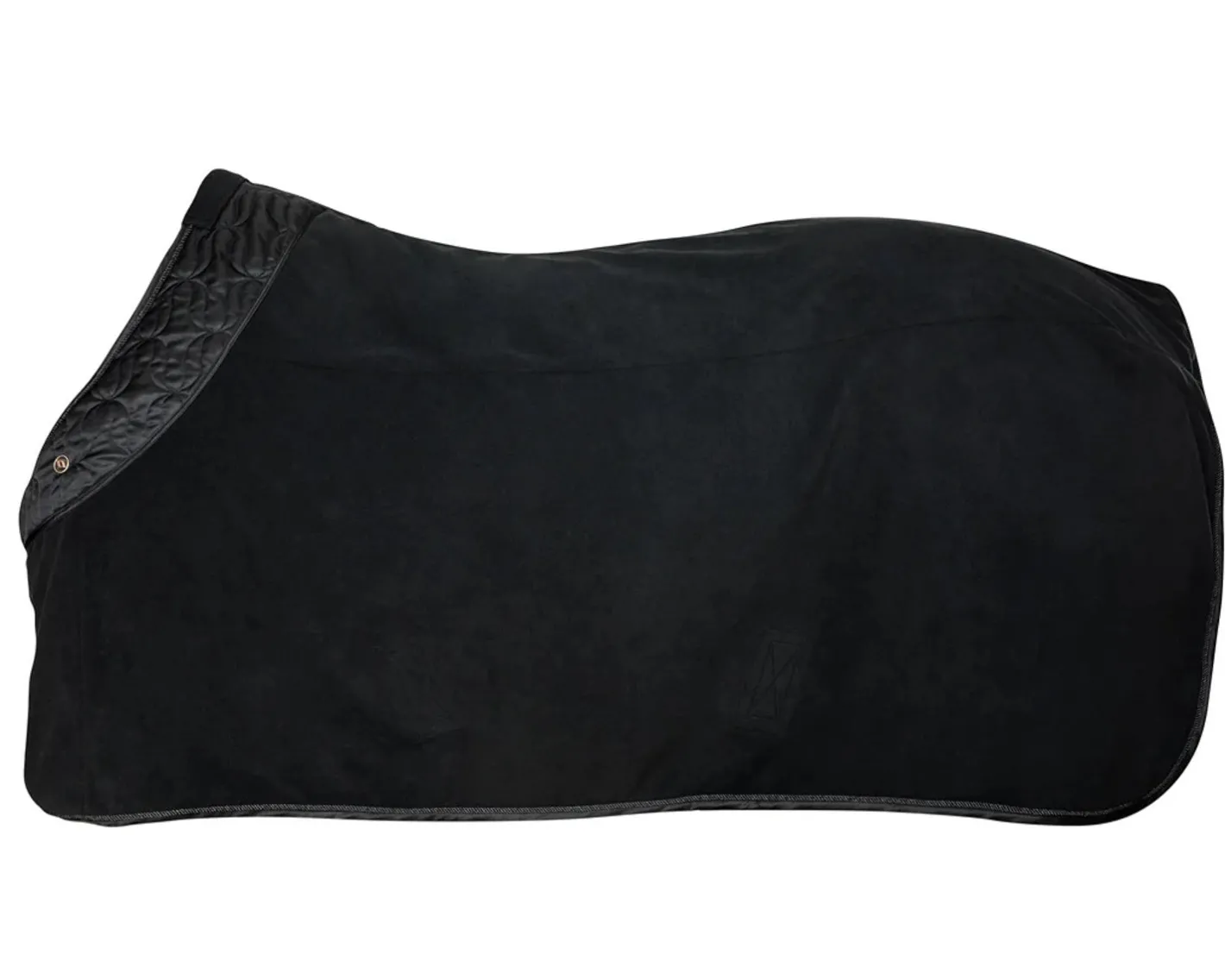 This versatile, high-quality Back on Track® Deep Nights Fleece Cooler is a long-awaited addition to the elegant Deep Nights Collection. Made from moisture-wicking fleece fabric with high breathability. Fused into the lining covering the back is our unique Welltex®?, which stimulates circulation and supports mobility in muscles and joints. This fleece cooler has a beautiful design with simple, tasteful embellishments and matte gold details. Around the neck, a unique quilted pattern features incorporated Back on Track wings. A matte gold Back on Track emblem adorns one side. These coolers are among the most multi-functional horse blankets available. They can be used as anything from sweat to stable coolers and are ideal for transport or layering under another blanket. The fleece fabric is suitable for year-round use. The cooler closes in front with two hook-and-loop T-buckles and is kept in place by detachable girths. It also includes D-rings for a tail cord.