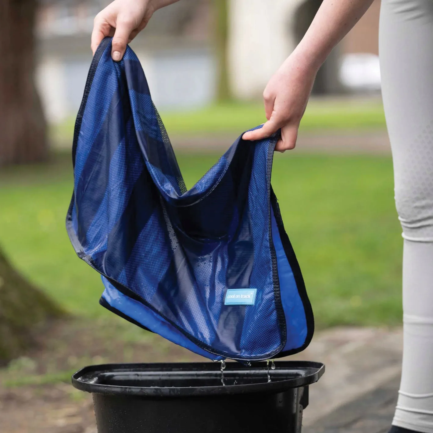 Back on Track® Cool on Track® Towel provides EFFECTIVE COOLING IN HOT WEATHER! With the Cool on Track towel, you keep yourself and your pets cool at all times during hot summer days. The cooling towel is made of a technical material that cools effectively through evaporation and has a durable mesh outer fabric to stimulate air circulation. It is simple and flexible to use both every day and to take with you on trips. The Cool on Track towel is purposely shipped damp to instantly provide the advanced cooling technology that it requires for it to be effective. All that is needed to restart the cooling effect is water!
