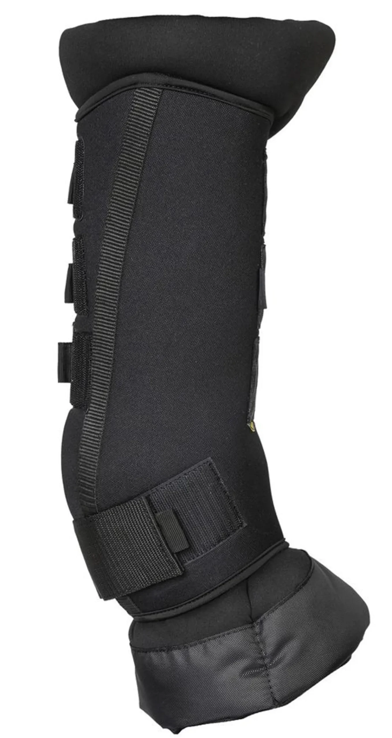 This Royal Deluxe version is an improved design that is anatomically shaped for the best possible fit, support and comfort. They are slightly higher at the top to minimize pressure on the tendon and provide increased freedom of movement to the horse’s legs. The inner pad has been fitted at the bottom with a reinforced water-repellent fabric that covers the top of the hoof, does not collect shavings and stays dry.