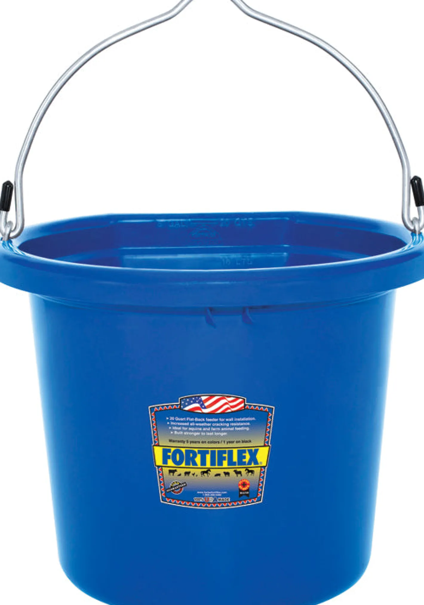 A favorite of many for watering or feeding horses, the Fortiflex® 20-Quart Flatback Bucket stands up to the daily rigors of the stable and barnyard—even in icy temperatures. It’s made of a food-grade, BPA-free Fortalloy rubber-polyethylene blend with heavy-duty galvanized fittings to resist cracking and breaking. The flat back design keeps it stable against a wall. Capacity markings in quarts, gallons and liters let you know exactly how much water your horse has consumed. Available in an array of colors to enhance your stable.