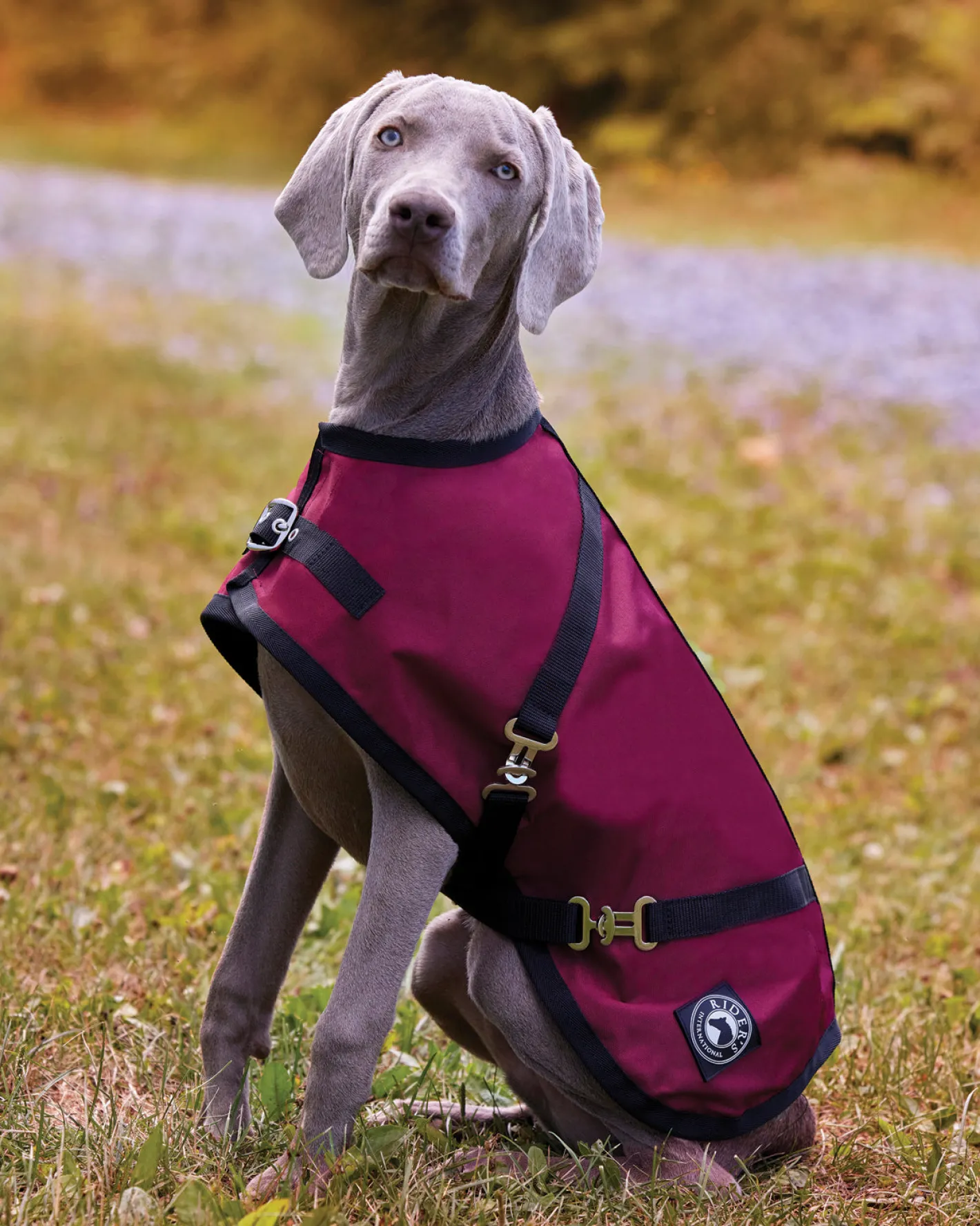 The Rider’s International™ Dog Turnout Sheet makes your wet weather walks more enjoyable – for both of you. Waterproof and breathable dog coat has a nylon outer shell and breathable nylon lining. Bias surcingles and buckle front closure.