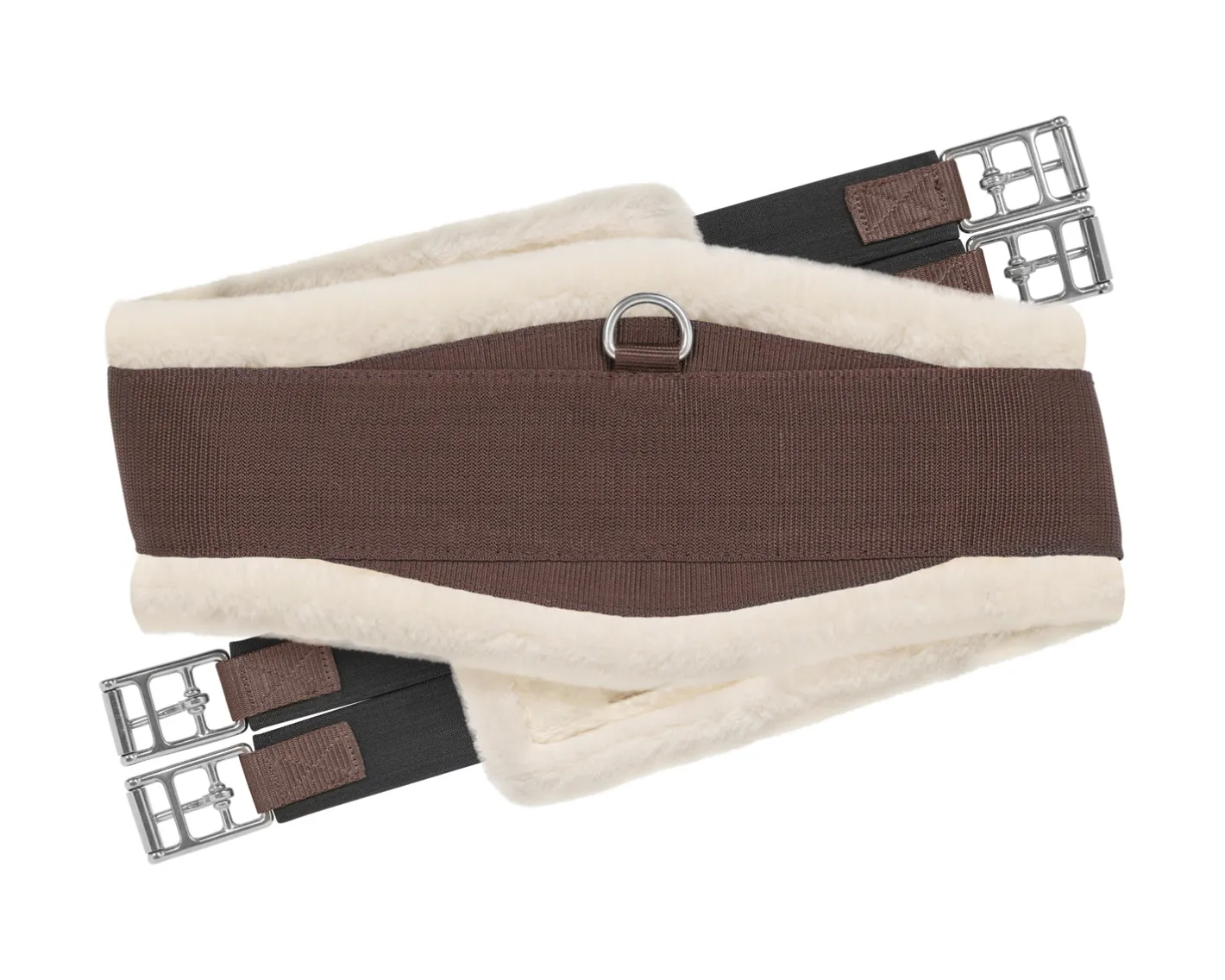 The girth offers easy adjustments with durable stainless steel roller buckles. Double 1.5″ wide elastic at each end promotes even pressure distribution. Three d-rings allow the attachment of training aids.