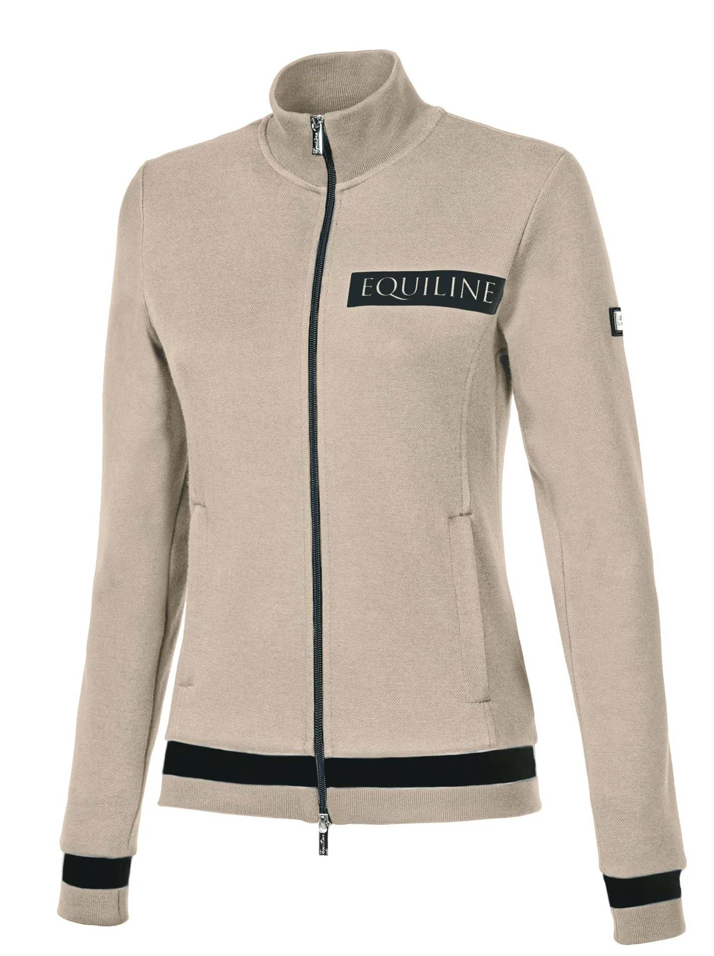 A refined sports aesthetic and extreme comfort meet in the Equiline Ladies’ Eliage Sweatshirt. Breathable fabric is constructed in a figure-flattering shape and trimmed with soft, ribbed cuffs and hem. Two-way zipper lets it function beautifully in the saddle. Side pockets are performance for warming hands.
