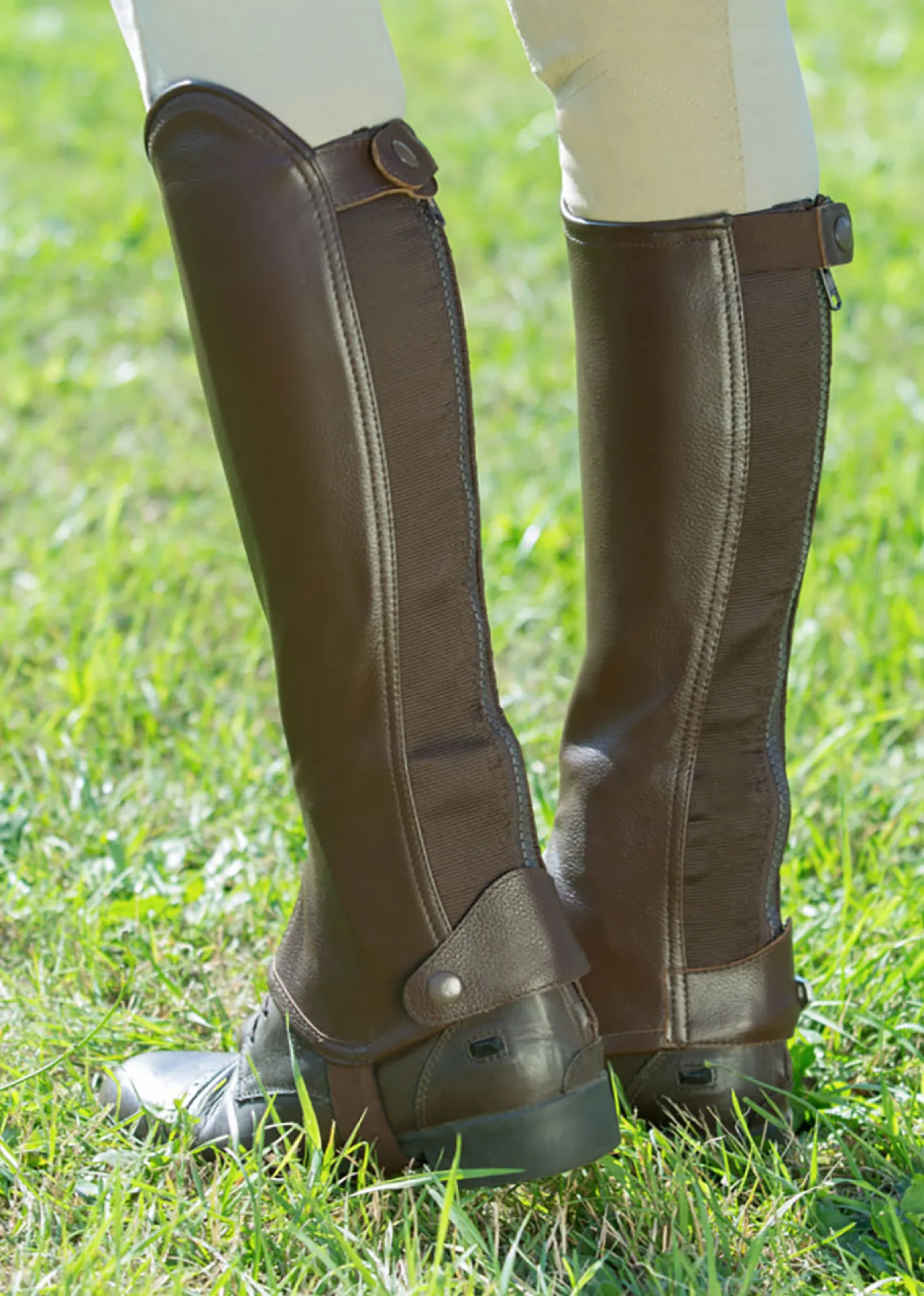 PRODUCT DESCRIPTION: Horze Leather Half Chaps with Elastic