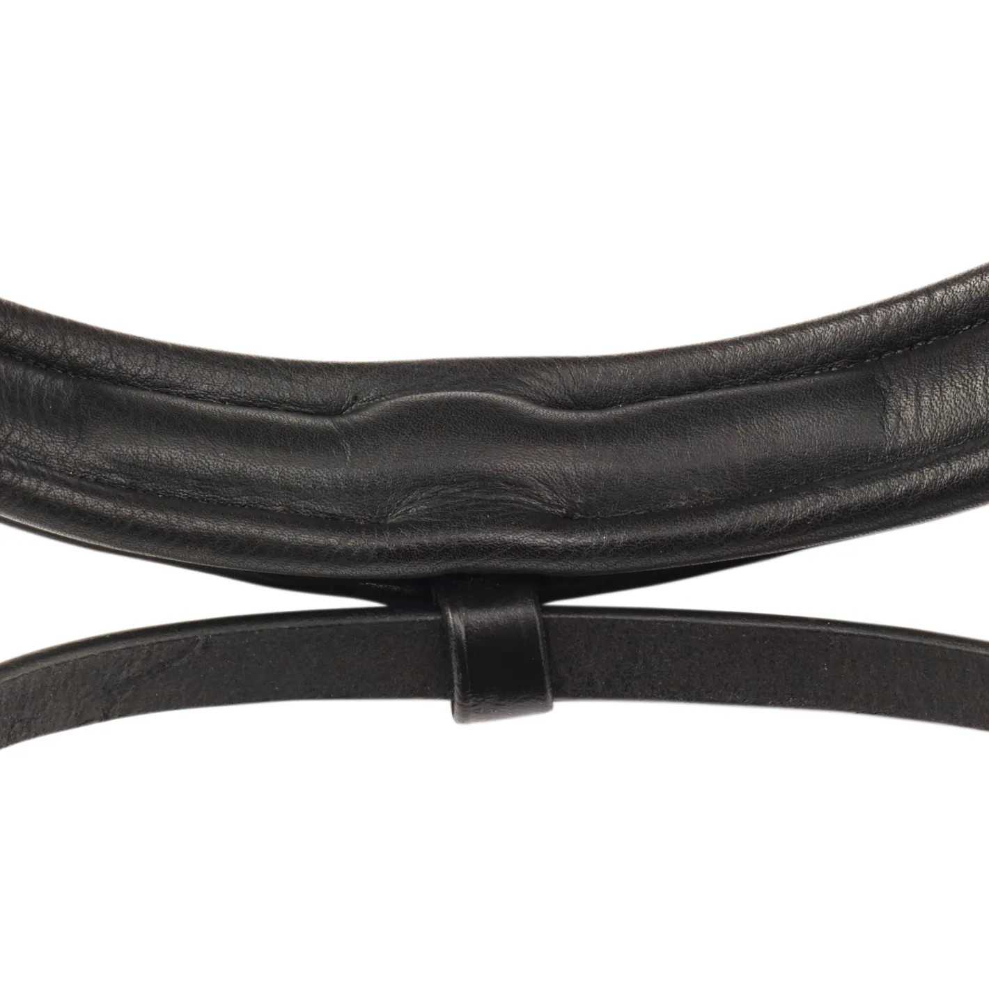 - 1 3/8″ wide curved, padded crank noseband with raised panel and removable flash.