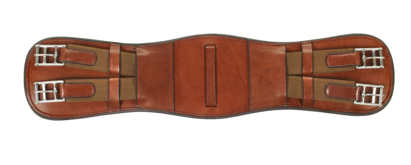 The Ovation® Monoflap Girth with contoured shape places soft padding against your horse. This leather girth has double elastic ends fitted with stainless steel roller buckles.