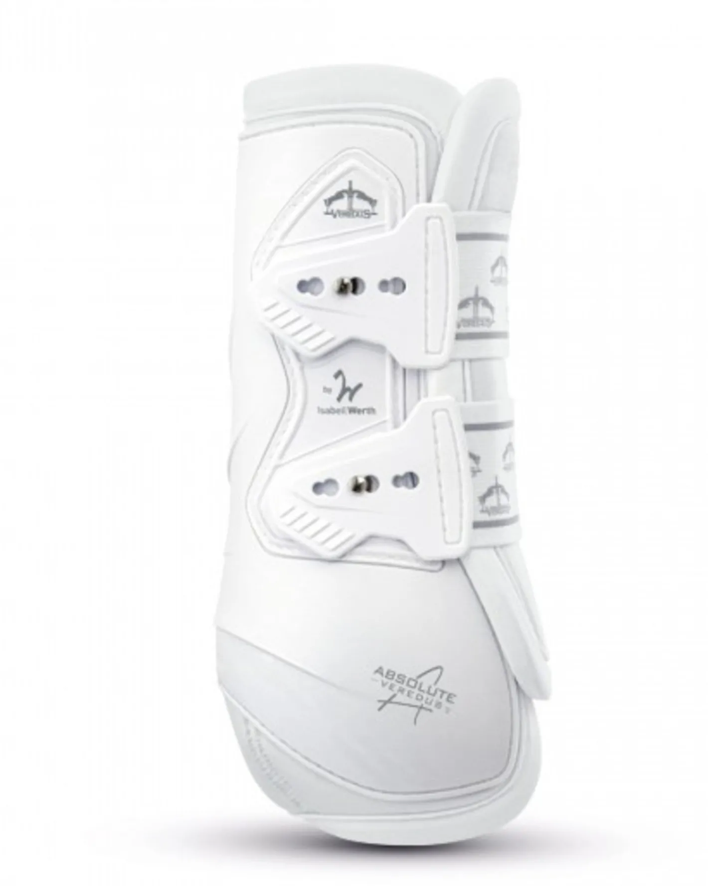Absolute Elastic Rear Dressage Boots are the result of collaboration between Veredus® and Isabell Werth. The boots combine her 30 years of experience at the highest levels of dressage plus innovative shaping and materials to ensure the best protection and support for tendons and ligaments during exercise.
