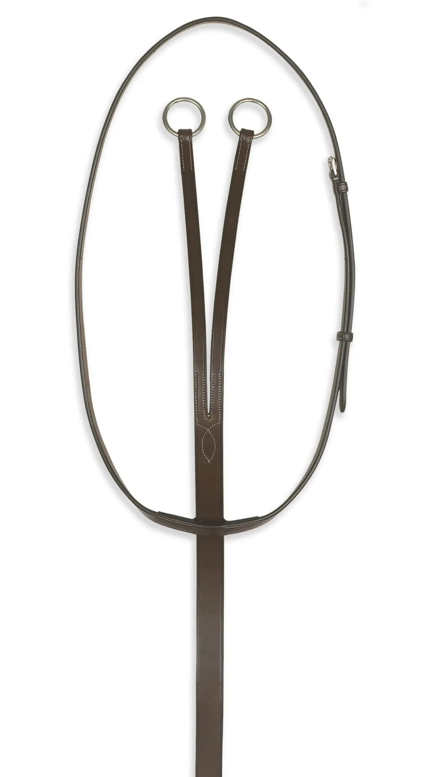 The Pessoa® Pro Fancy-Stitched Running Martingale has superb craftsmanship. It is finely detailed with elegant white stitching, brown burnished edges, refined buckle straps, neat secure keepers and protective leather chapes. It is fitted with top quality stainless steel hardware.