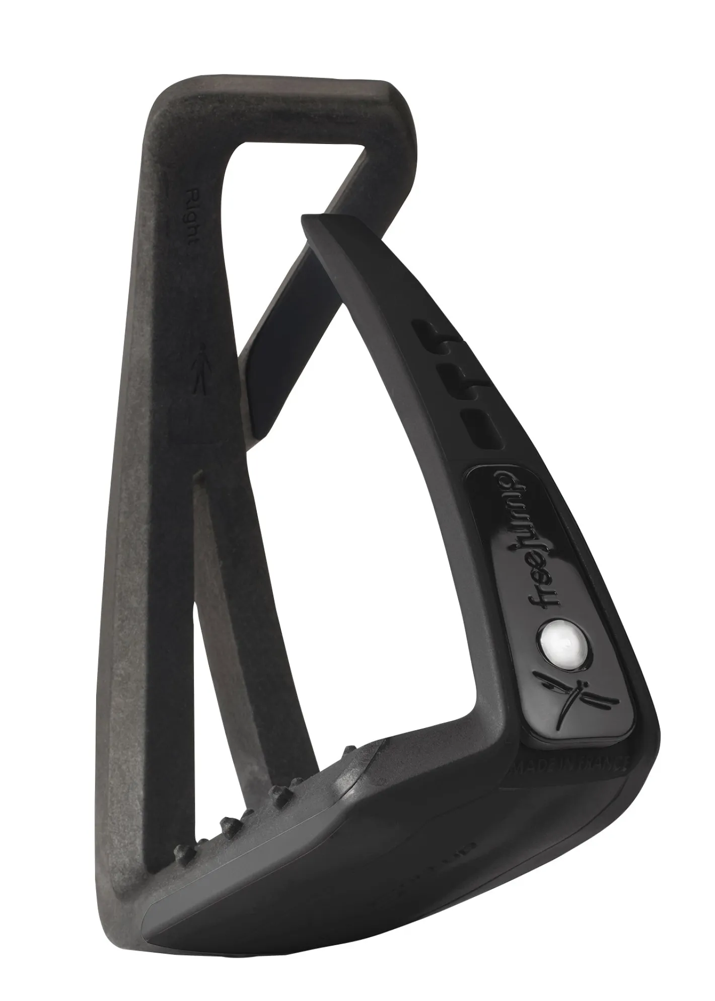 The Freejump® Soft’Up Lite Stirrup delivers the performance, durability and reliability champions demand. This single-branch 100% injection molded composite stirrup is extremely lightweight and designed for use with Freejump’s singe-strap stirrup leather. The open stirrup eye allows the leather to attach without a buckle for a streamlined feel and to hang at a 45°angle that allows for a perfect foot position.