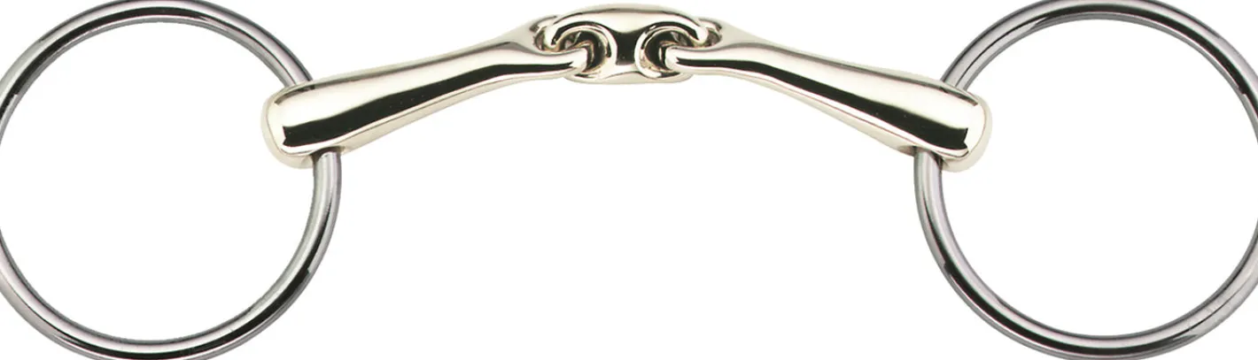 The Herm Sprenger® KK Ultra Sensogan® Loose Ring Bit has a 14mm Sensogan mouthpiece with a center link that is rotated 45° to rest smoothly on the tongue. This design helps promote a sensitive and precise connection between the rider and the horse. Stainless steel rings are 70mm.