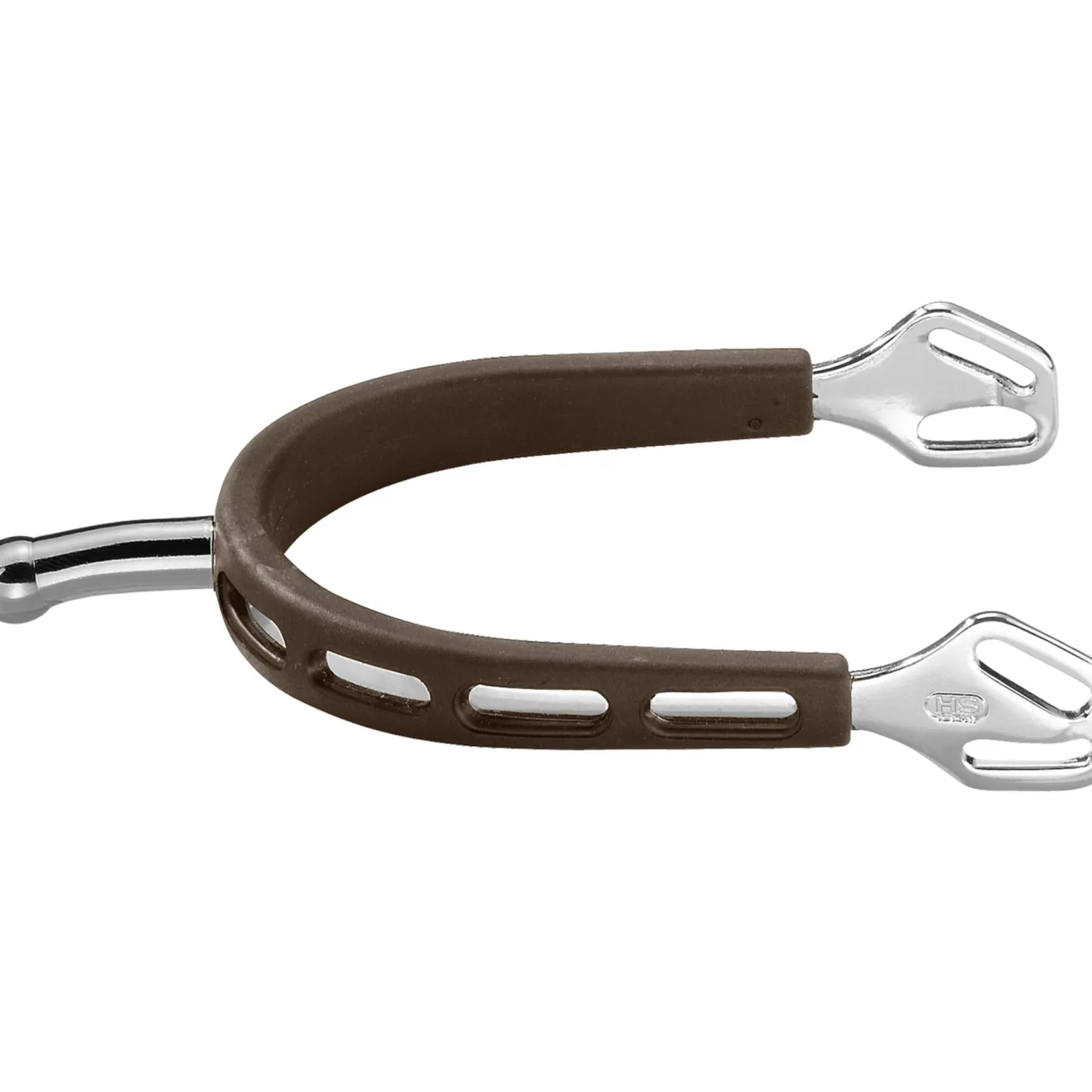 Manufactured in Germany, Herm Sprenger® Ultra Fit Brown Grip Round End Spurs feature top quality stainless steel construction. Refined and elegant, these spurs are designed to fit correctly, eliminating some of the pinching and unwanted movement often found with spurs. Long-lasting brown rubber covers on the branches offer an attractive look while shielding brown boot leather from rubs and providing greater stability.