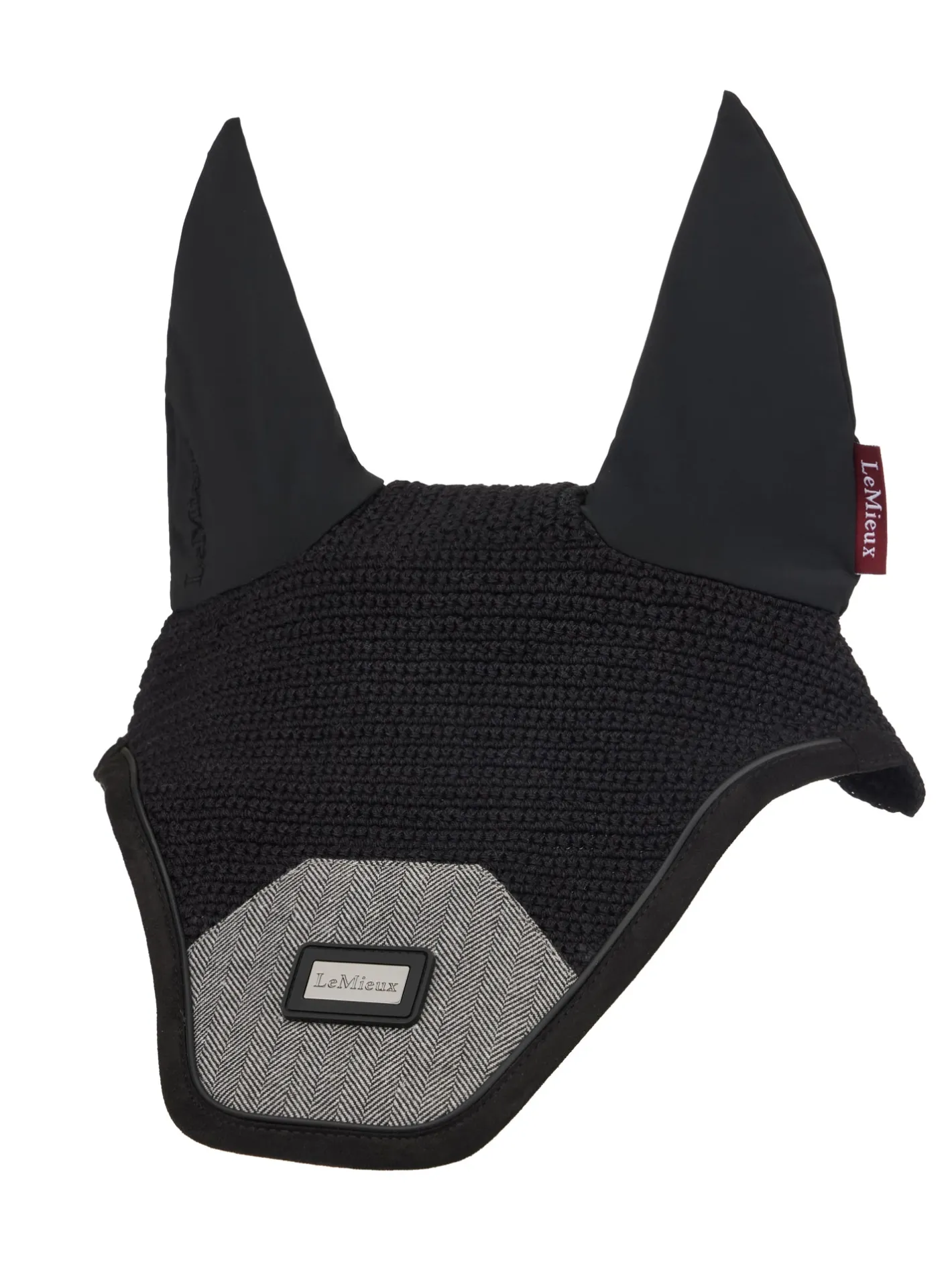 The elegant and sophisticated LeMieux® Aspen Fly Bonnet is designed with handmade crochet in a close weave knit top. Soft and four way stretch ears keep your horse comfortable. Coordinated feature patch with patent PU detailing. Gunmetal badge