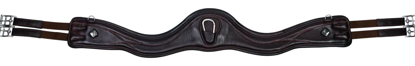 The girth’s contoured shape avoids interference with the horse’s elbows, and thinner, tapered ends even out pressure at the edges of the girth.