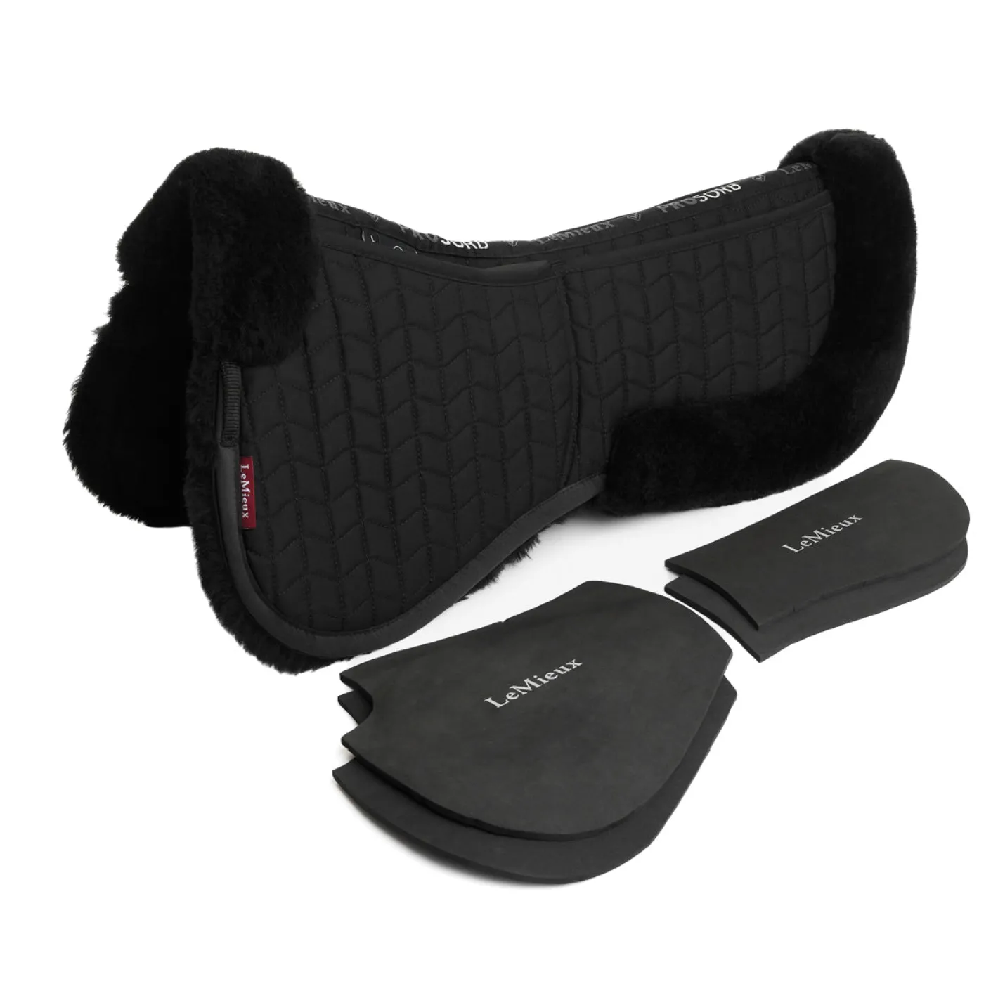 LeMieux® redefines saddle fit with the new LeMieux Merino+ ProSorb 2-Pocket Half Pad. Lined with an Australian Merino+ blend (70% merino 30% acrylic), combined with a flexible backing, Merino+ washes better and dries faster than ever before. The dense and soft dynamic wool structure shapes to your horse’s back offering breathable support and comfort. The new quilt pattern also helps the pad hug your horse’s shape. The clear spine, high wither shaping and anti-rub lumbar area offer optimal fit and comfort. With improved length under the saddle, this could be the most comfortable half pad out there. Practical, yet discreet, D-ring slits enable easy attachment to LeMieux saddle pads with elasticated D-ring tabs. The improved high-density foam inserts maintain their shape while reducing pressure points. Supplied with two sets of 5mm foam shims for precise fit adjustment.