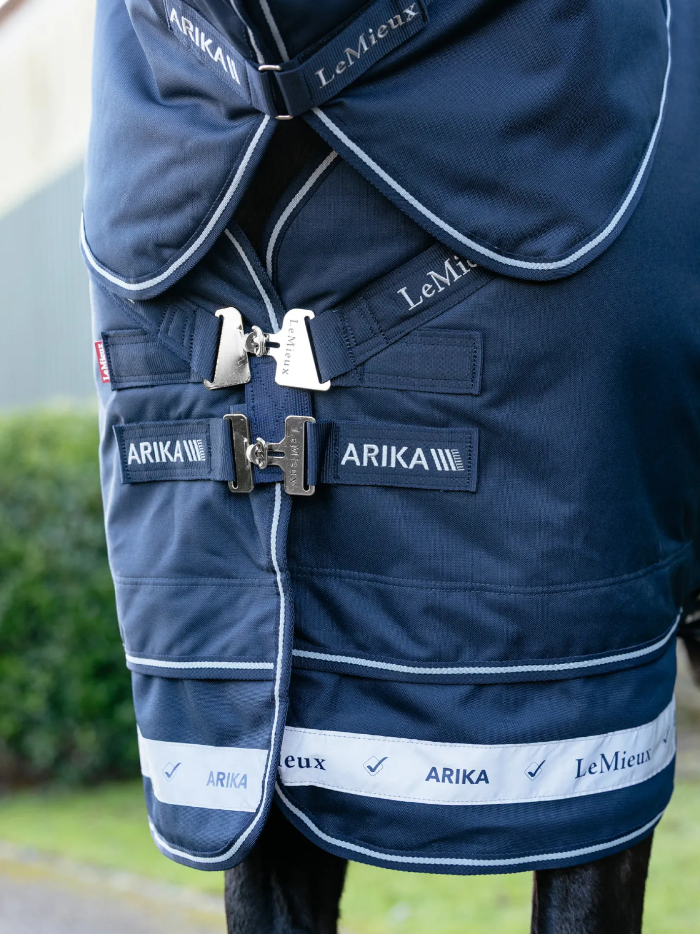 PRODUCT DESCRIPTION: LeMieux® Arika Storm-Tek 100 Gram Turnout Blanket with Leg Straps