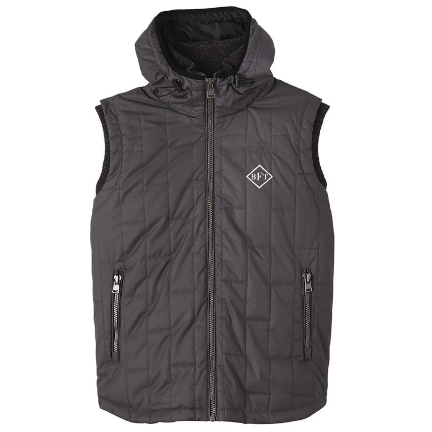 Keep your core warm in the stylish and practical Horseware® Men’s Finn Vest. Made with a cool quilted outer, it combines a soft poly sherpa fleece lining, an attached hood and a heavy ribbed collar for cozy comfort. Practical zippered pockets stow your essentials. Closes with a one-way zipper.
