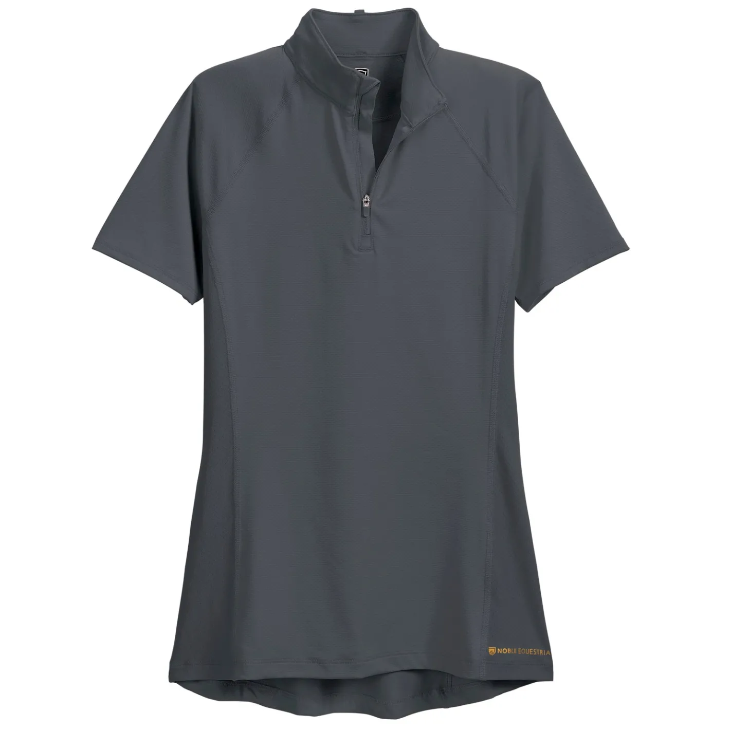 Ideal for schooling or showing, this fitted riding shirt has princess seaming to create a feminine fit. Flat seam construction and a tagless neck label provide softness. A reverse coil YKK® zipper, stock tie loop at the back neck and dropped back hem complete this versatile top.