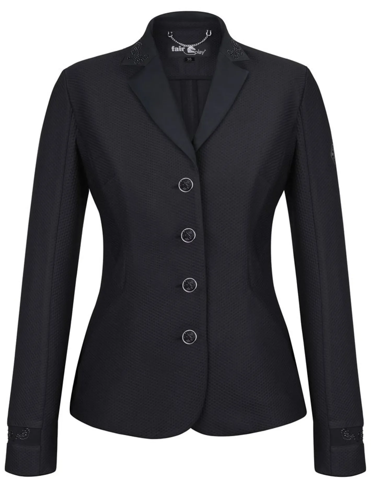 Fair Play® Taylor Comfimesh™ Chic Show Coat is a modern jacket made of extremely lightweight, breathable and elastic mesh fabric—ideal in hot temperatures. In a special weave that resists abrasions, Comfimesh fabric provides great breathability and quick-dry properties.