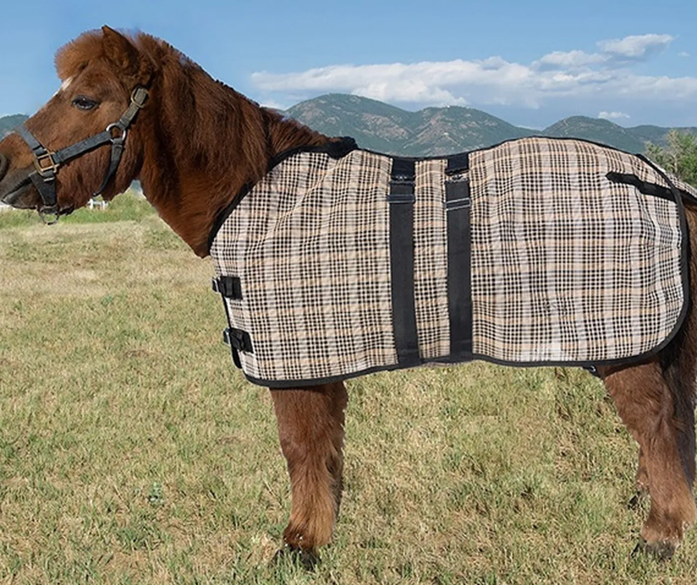 The 5/A Baker® Mini PVC Fly Mesh Sheet offers your miniature horse a high level of insect protection. Manufactured from durable 1000 x 2000 denier poly-coated mesh fabric, it withstands fading, mildew, soiling and wear and tear. The mesh also helps keep harmful UV rays, dirt and grime away from your horse.