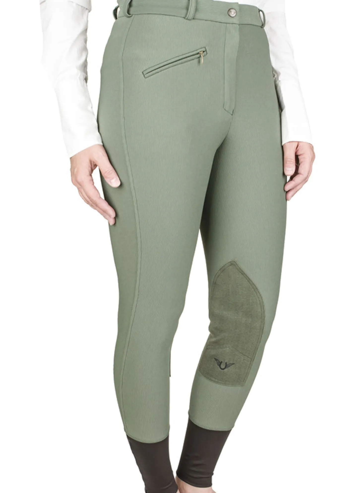 You’ll appreciate the TuffRider® Breech for its durability, easy care and budget-friendly price! Long-wearing stretch ribbed fabric offers comfort for riding; UltraGripp™ knee patches provide grip. This classic ladies’ breech is styled with a regular rise, front-zip closure, flattering slant zip pocket and stretchy sock bottoms.
