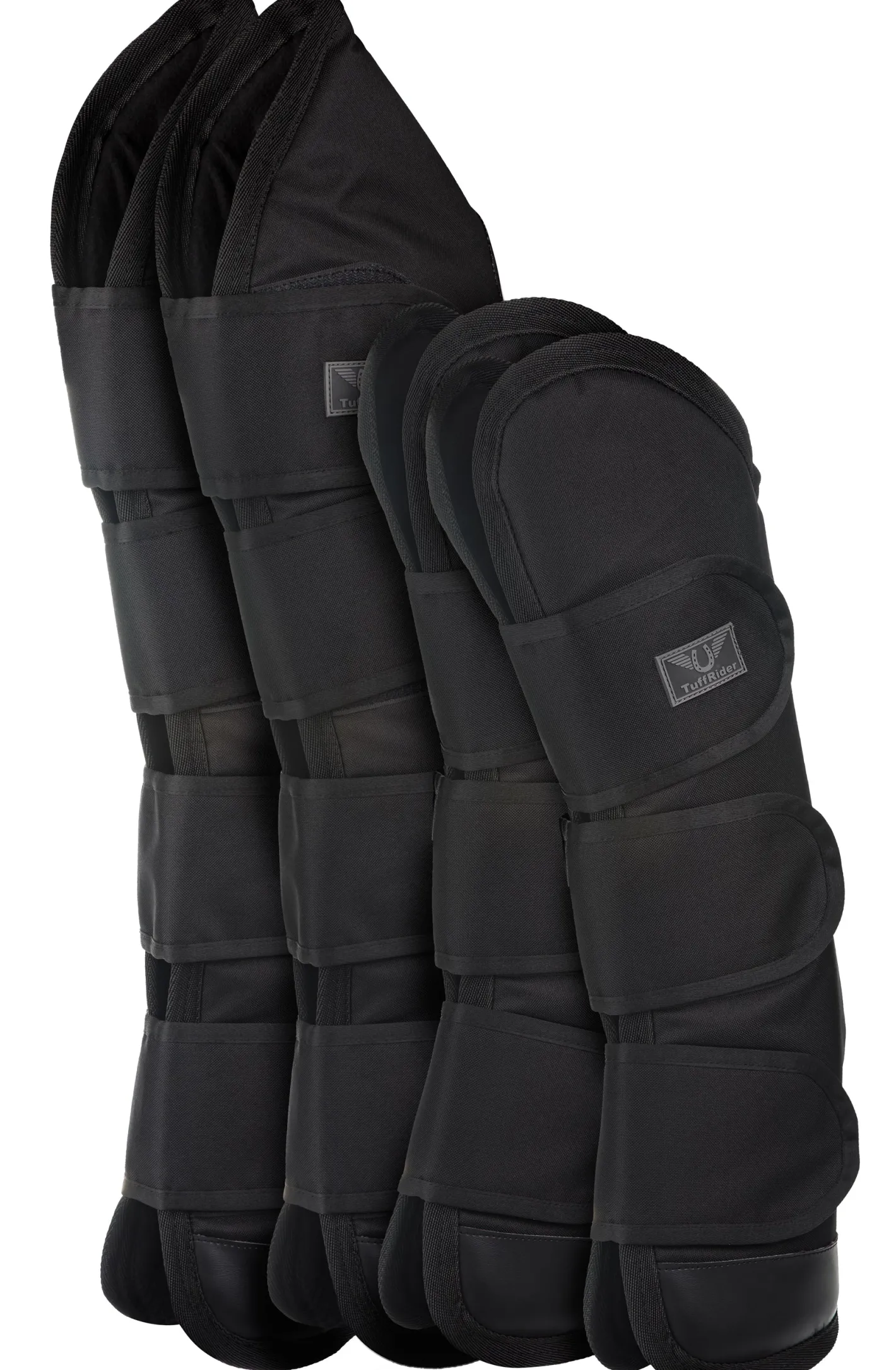 TuffRider® 600D Oxford Shipping Boots offer leg protection for your horse during travel. The outer shell is made of water-repellent 600 denier Oxford poly fabric that holds up to the demands of traveling. Reinforced bottoms help protect hooves and shield against wear.