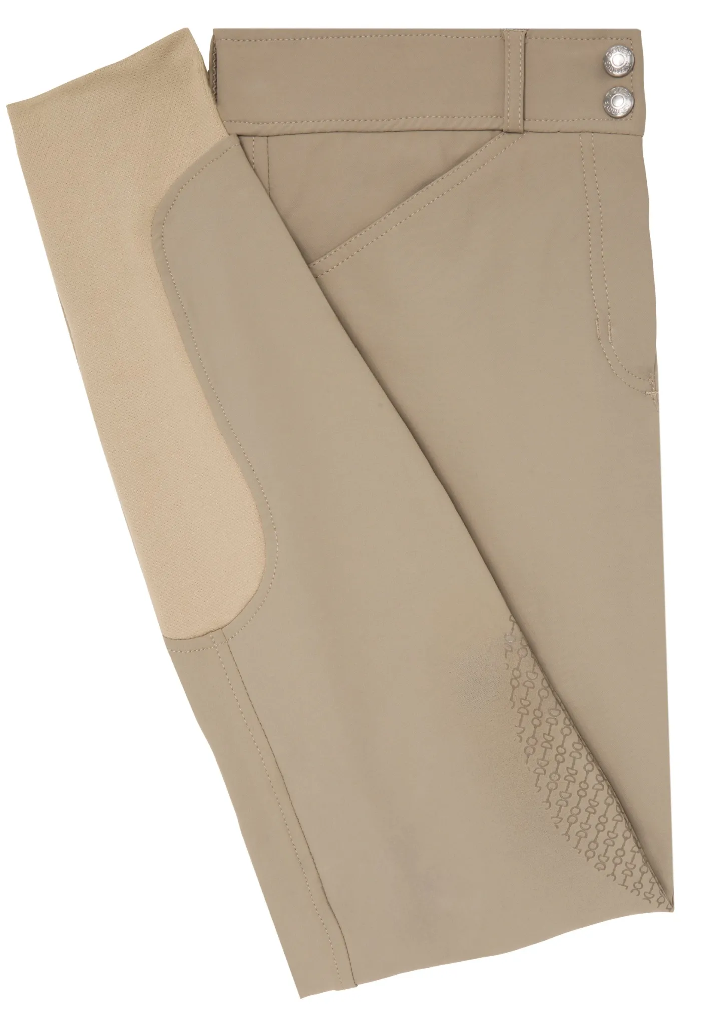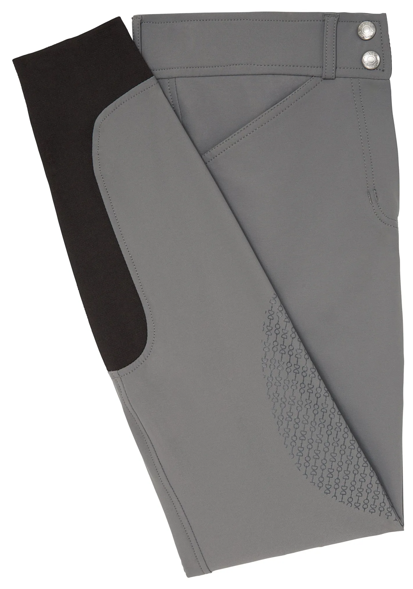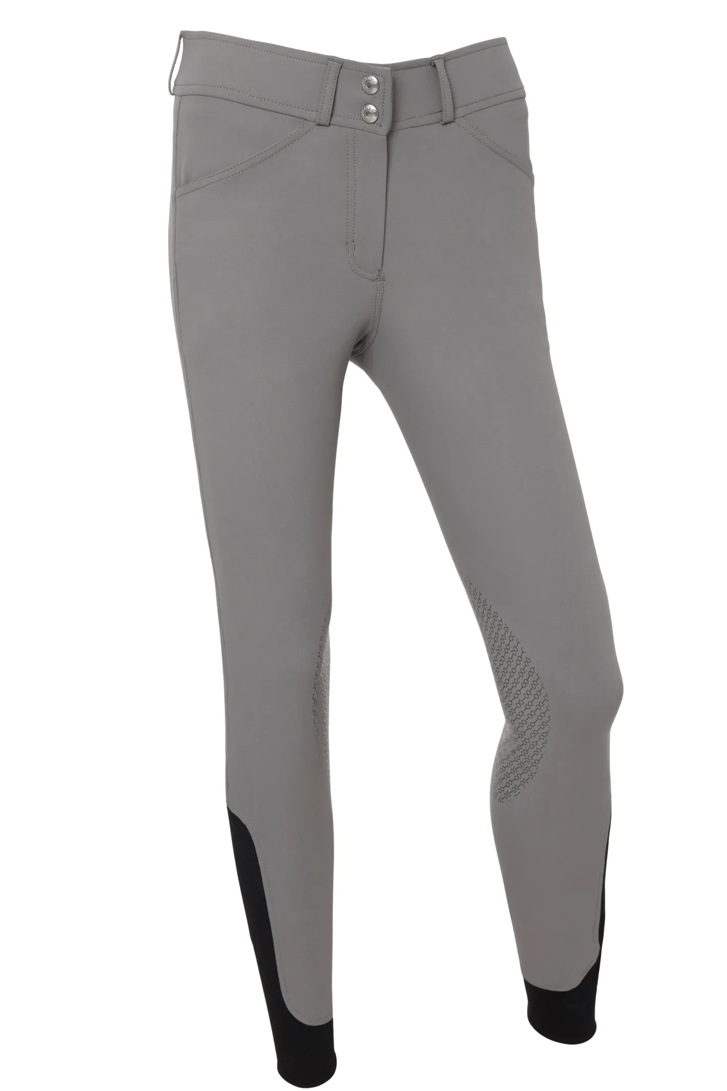 The mid-rise EquiTrue Rise™ sits just below the belly button on most riders. It stays true to your form as you ride or bend to groom. The soft, covered waistband prevents your skin from contact with closure hardware.
