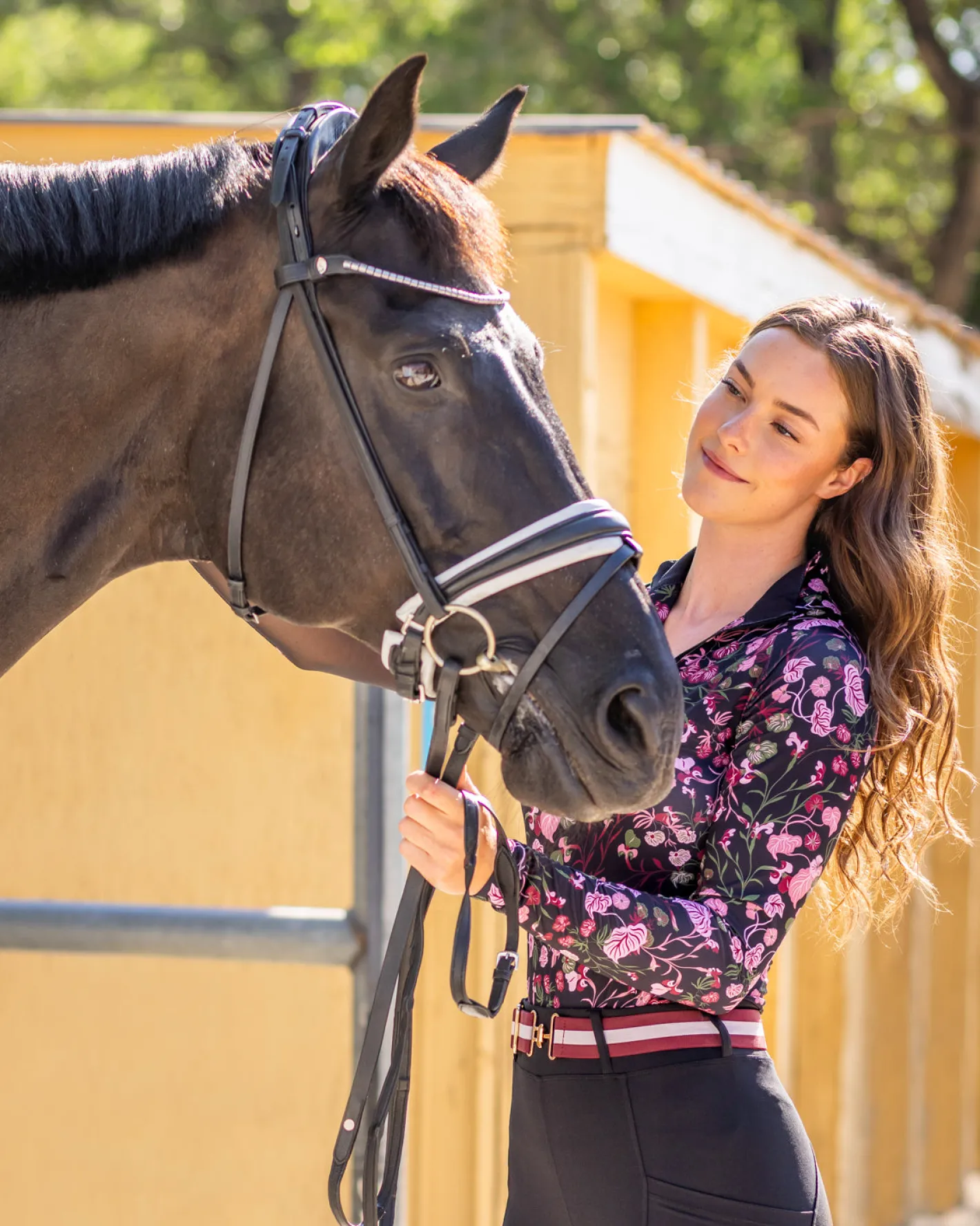 Kastel Denmark Ladies’ Quarter-Zip Modern Begonias Long-Sleeve Shirt is this season’s eye-catching print. Rich colors in berries and pinks with a lovely green and black background is both beautiful and practical. In soft 4-way stretch with a versatile quarter-zip neck. Flattering design can be worn tucked in or out. UPF 30 for everyday sun protection.