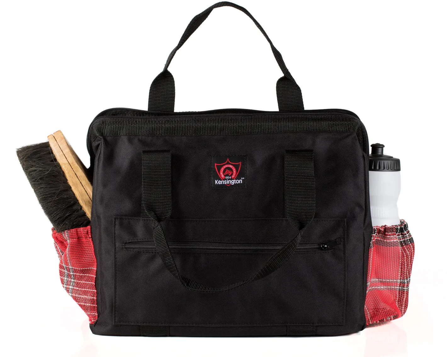 The Kensington™ All Around Zippered Show Tote is a handy bag inspired by an old-fashioned doctor-style bag with zippered top closure. Made of ballistic nylon for durability, this equestrian tote features a Textilene® mesh bottom that allows for easy cleaning: