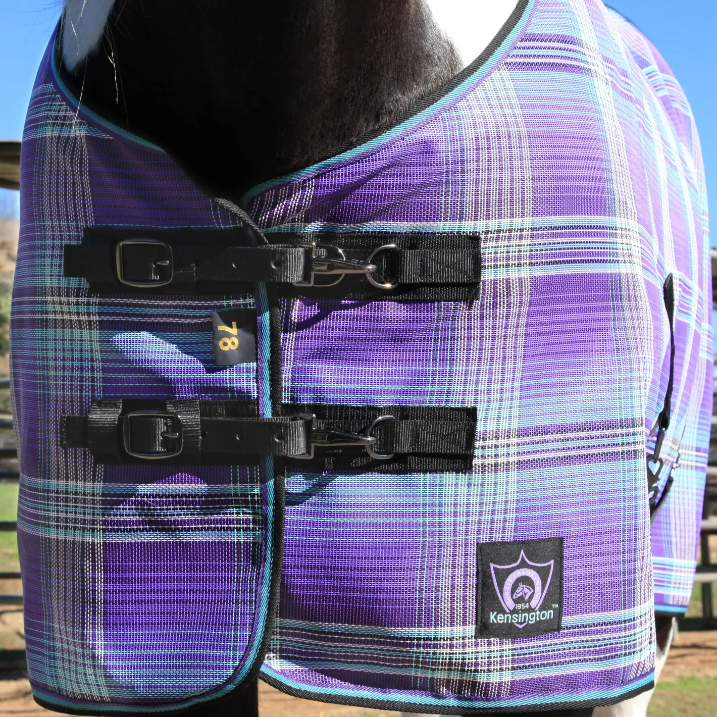 The breathable fabric is fade- and mildew- resistant, fire retardant, and treated to protect your horse from UV rays, dirt and grime. In bug season, this fly sheet keeps flying insects off; in snowing conditions, it can be layered over Kensington turnouts add extra life to the blanket while keeping snow from coming in direct contact with the waterproof blanket.