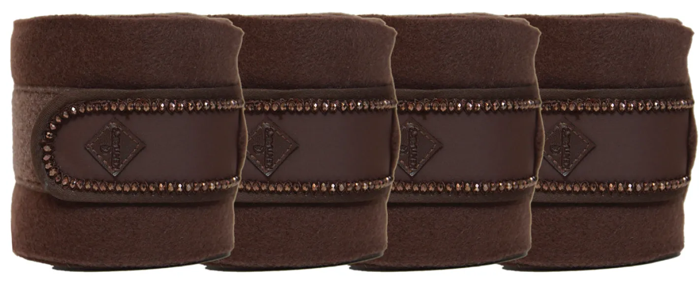 Kentucky Horsewear Pearl Polo Wraps in high-quality, mid-weight Polar Fleece resist pilling. Each secures with a tonal, faux pearl-trimmed Velcro® brand fastener. Set of four polo bandages arrives in a reusable zipped storage case.