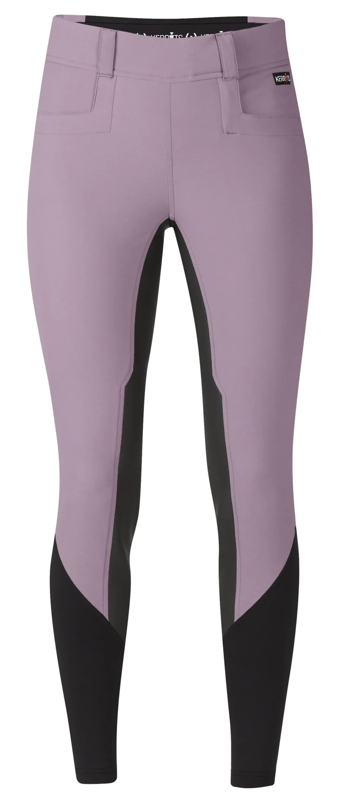 Square front pockets, belt loops, subtle branding and stretch sock bottoms give this breech a polished look. Kerrits’ popular Flow Rise waist sits low in front and slightly higher in the back for modest coverage.