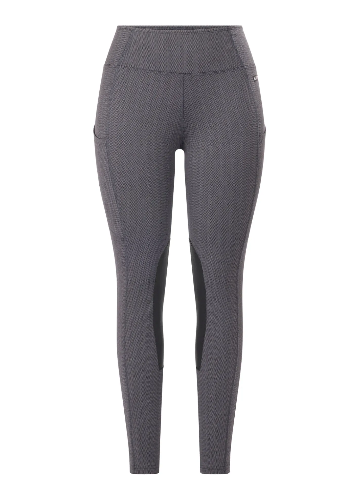 Kerrits® Fleece Lite Knee-Patch Tight 2.0 is a lightweight and comfortable winter style. Shades of Kerrits herringbone jacquard pattern keep rides colorful. Cozy brushed fleece inside makes this tight warm indoors and suitable as a layer outdoors in cold weather. The high, wide waistband is enhanced by allover four-way stretch with flattering compression and shape retention.