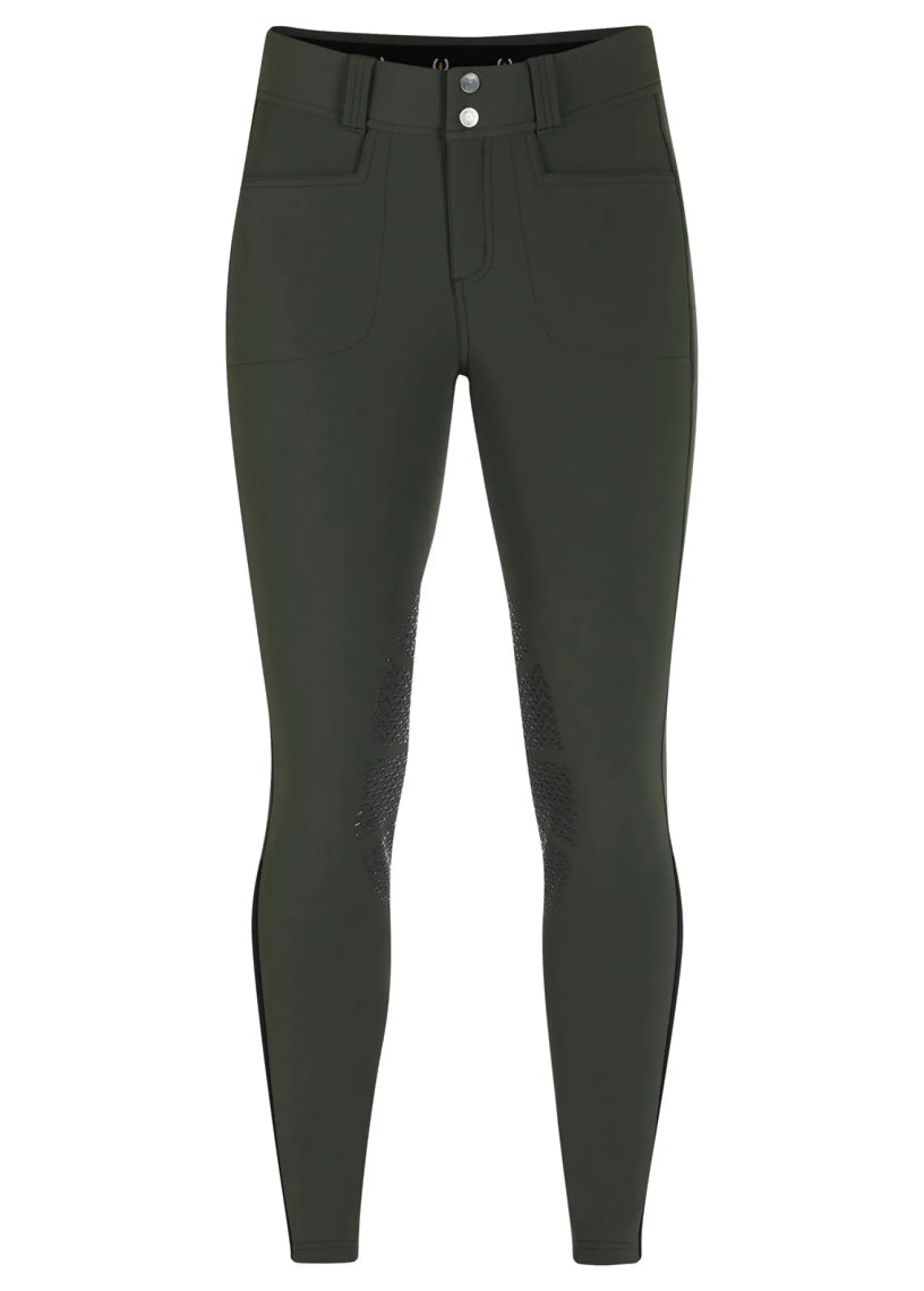 The Kerrits® Three-Season Tailored Breech means you now have a breech you can wear for lessons or clinics that require a traditional look, but enjoy the warmth of a fleece riding tight. This classically styled ladies’ breech is made of durable, stretch-woven fabric with a cozy fleece interior ideal on chilly days. A tailored style, it has flattering seam lines and a Euro seat. Ergonomically shaped silicone knee patches give you a flexible, secure grip regardless of the weather.