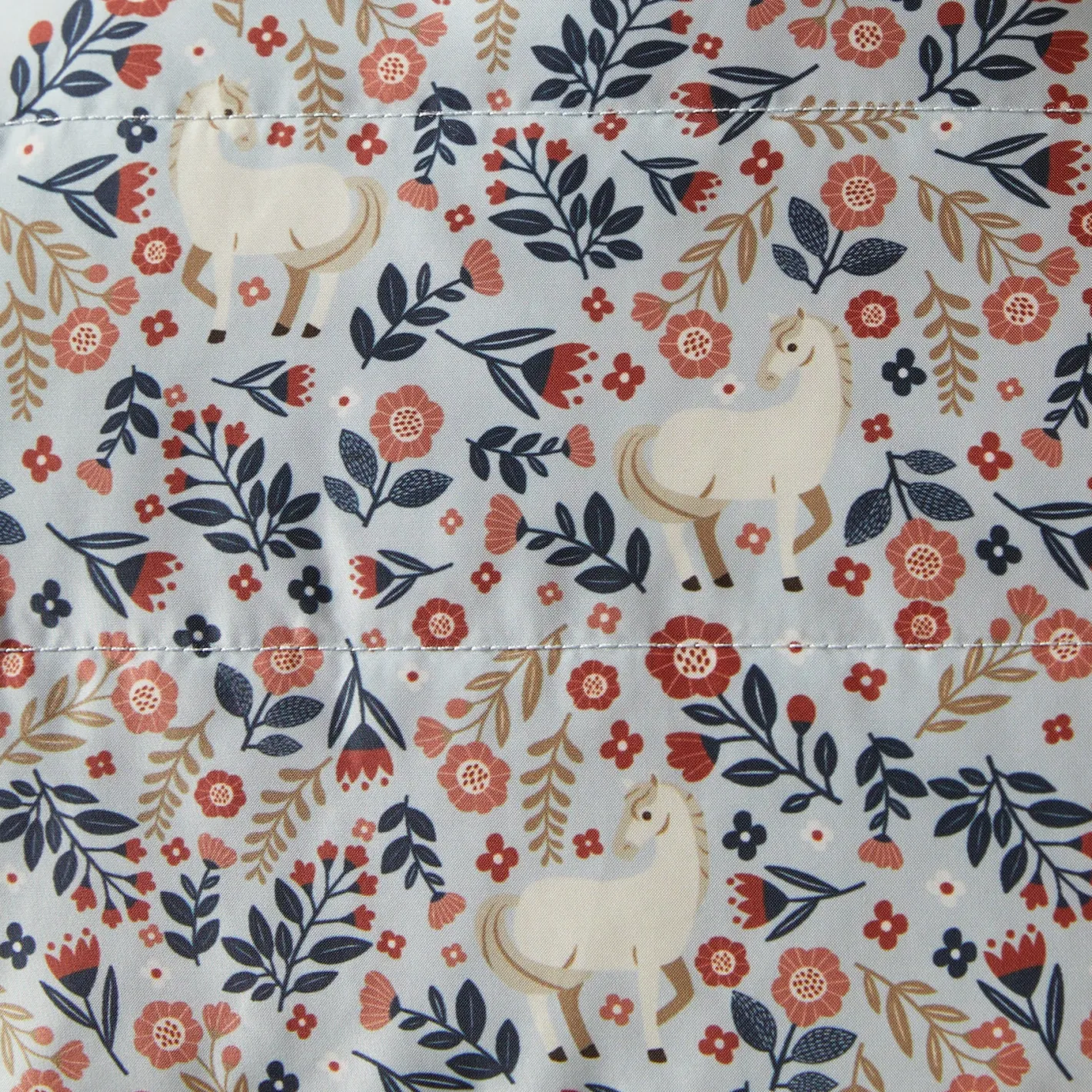 Two cute looks in one cozy Ariat® Kids’ Bella Reversible Vest! One side has a lively horse print, the other is a solid color. Easily reversed for a completely different look, or to hide the dust when heading to school. Water-resistant outer quilted over 100 grams of lightweight Cool Climate™ Insulation. Stand collar, full front zip, handwarmer pockets.