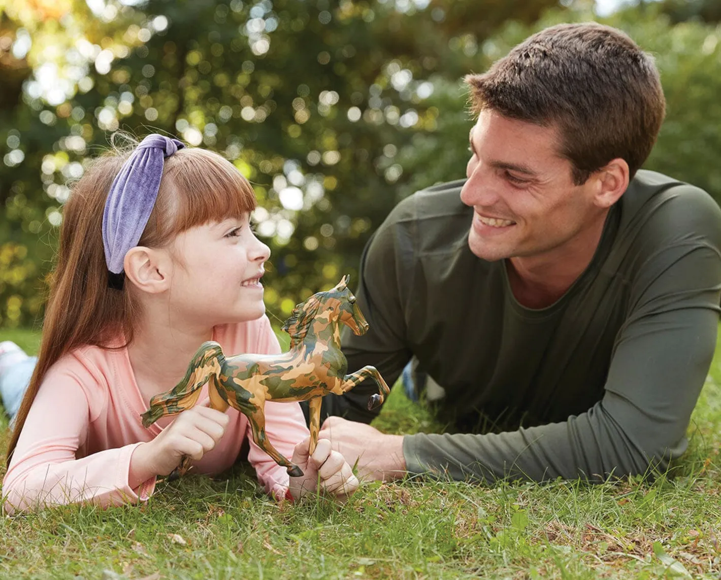 Meet Breyer® Hope Horse 2025–Honor. Breyer’s mission of Hope continues with the introduction of Honor, our camouflaged-patterned American Saddlebred stallion. Equine-assisted therapy has proven to be a valuable tool in healing trauma and giving Veterans a chance to build a soulful, positive relationship. Through the power of the horse, they rebuild their trust and confidence in the world around them. Healing begins with hope, and hope begins with you! For each Hope model sold, Breyer will donate $1 to charities focused on bringing veterans and horses together, including Wounded Warriors equine therapy programs and BraveHearts Therapeutic Riding. Through their tireless efforts, they help forge these bonds that set veterans on a path to healing, happiness, and normalcy. “Healing begins with Hope, and Hope begins with you”.