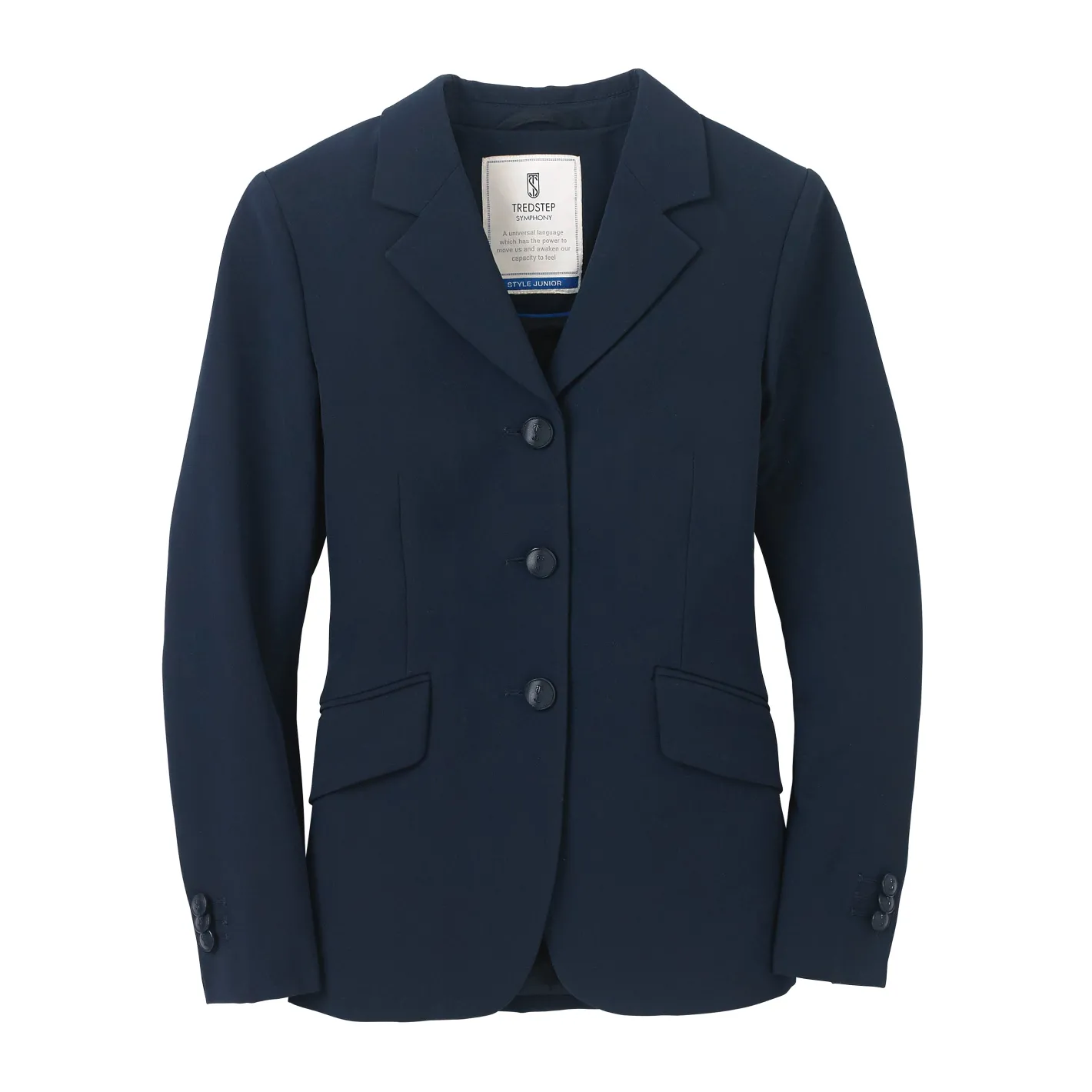 The Tredstep™ Symphony Show Coat Jr. gives the young rider all the athletic performance features for which this equestrian brand is known, but at an attainable price. As Tredstep’s entry level children’s show coat, it represents a perfect balance between high performance and traditional style that stands the test of time. It’s tailored in easy-care breathable, “noiseless” twill fabric with four-way stretch and a soft hand. Features include a full stretch fabric lining, angled flap pockets and double back vents.