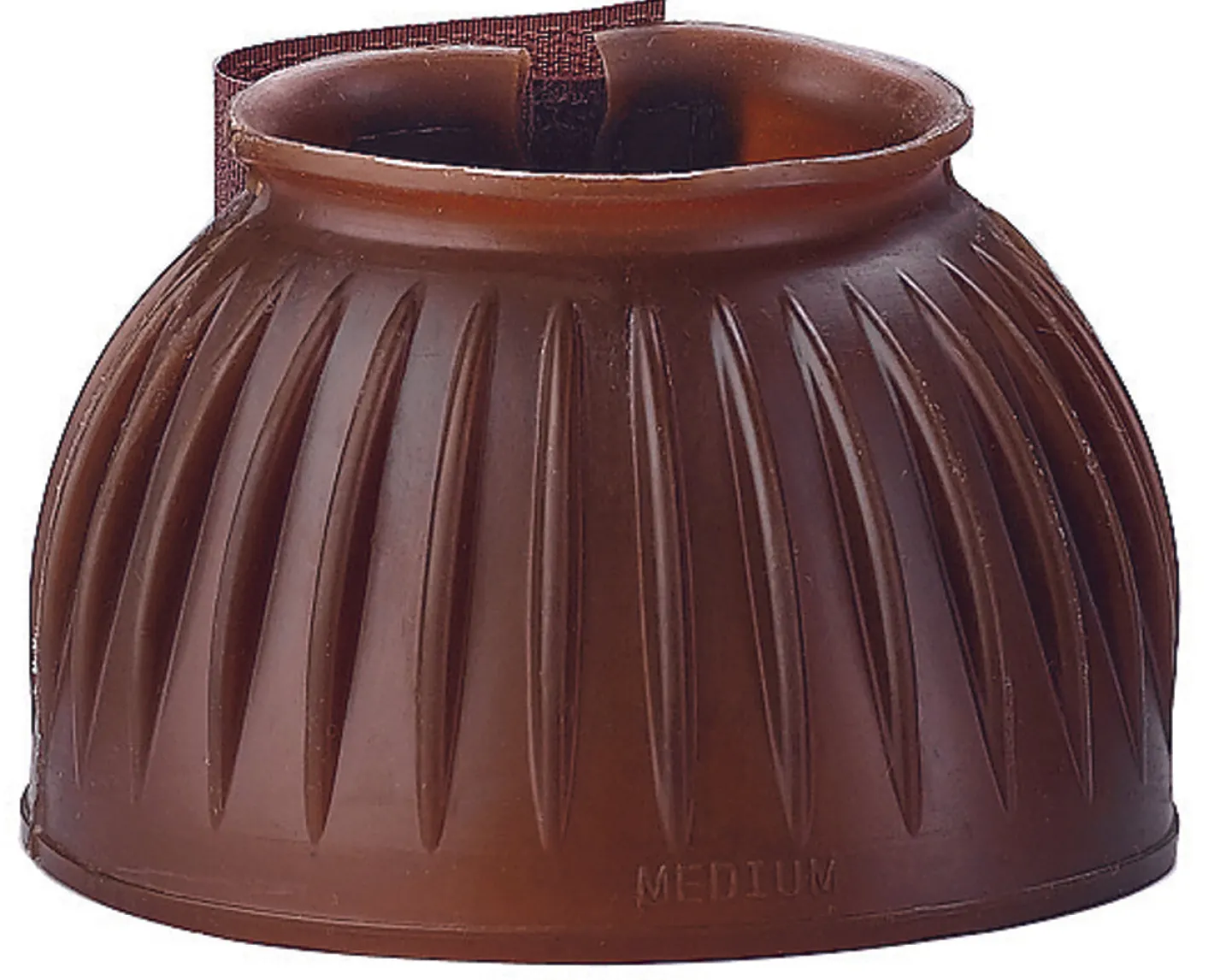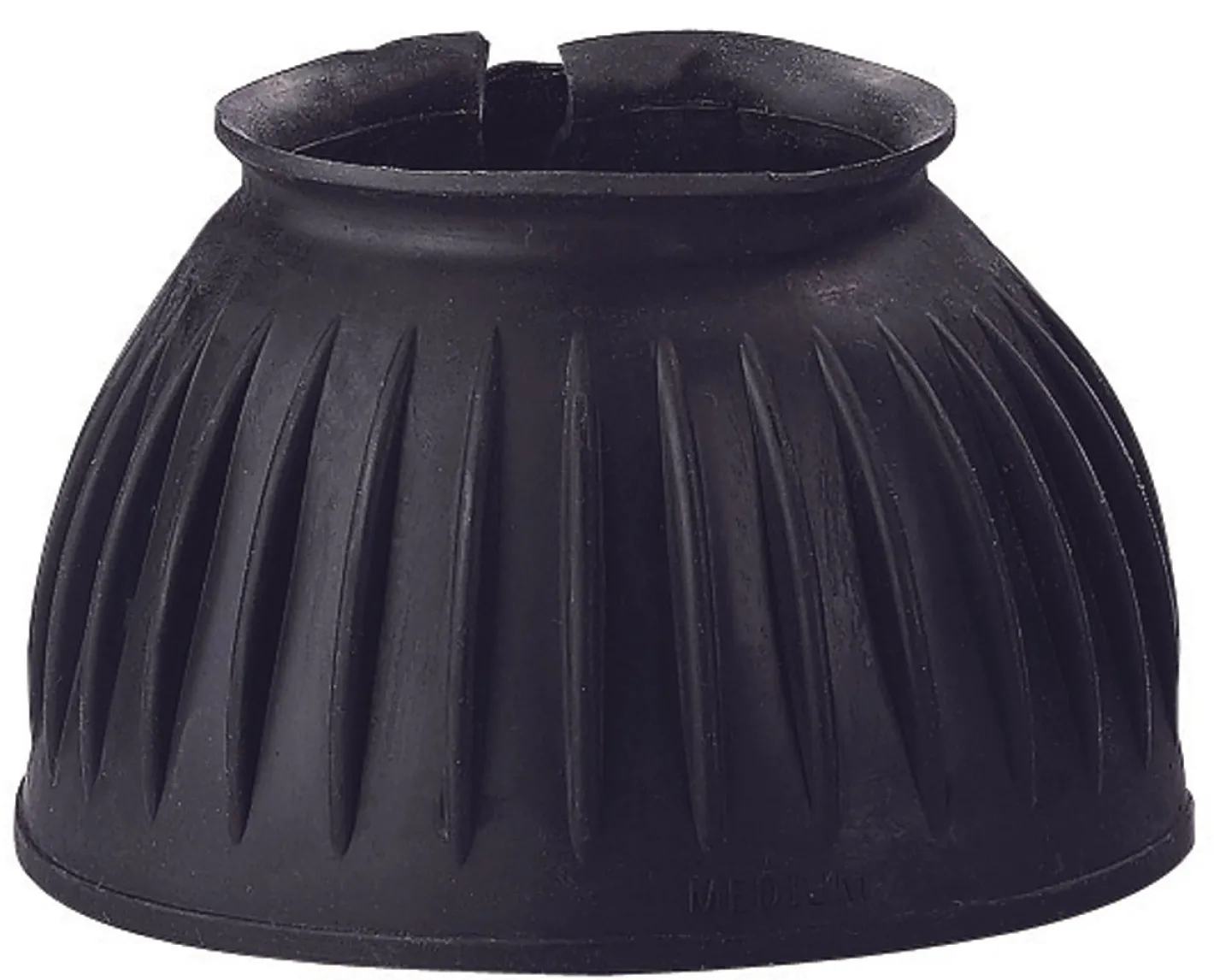 Equi-Stretch® Ribbed Bell Boots are made from pure rubber that provides flexibility, resiliency and durability. Hook-and-loop closure allows for quick and easy on/off. Ribbing adds strength for longevity and helps deflect hoof strikes. Pair.