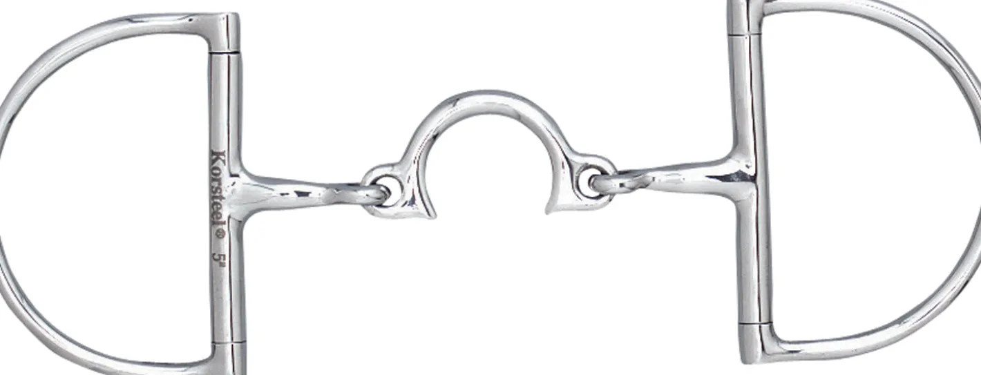 Made of stainless steel, the Suffolk™ Broken Segunda Hunter D-Ring Snaffle Bit has an upside-down, U-shaped port and classic dee rings. This bit puts pressure on the horse’s mouth, tongue and palate. The cheeks support sideways stability in the mouth.