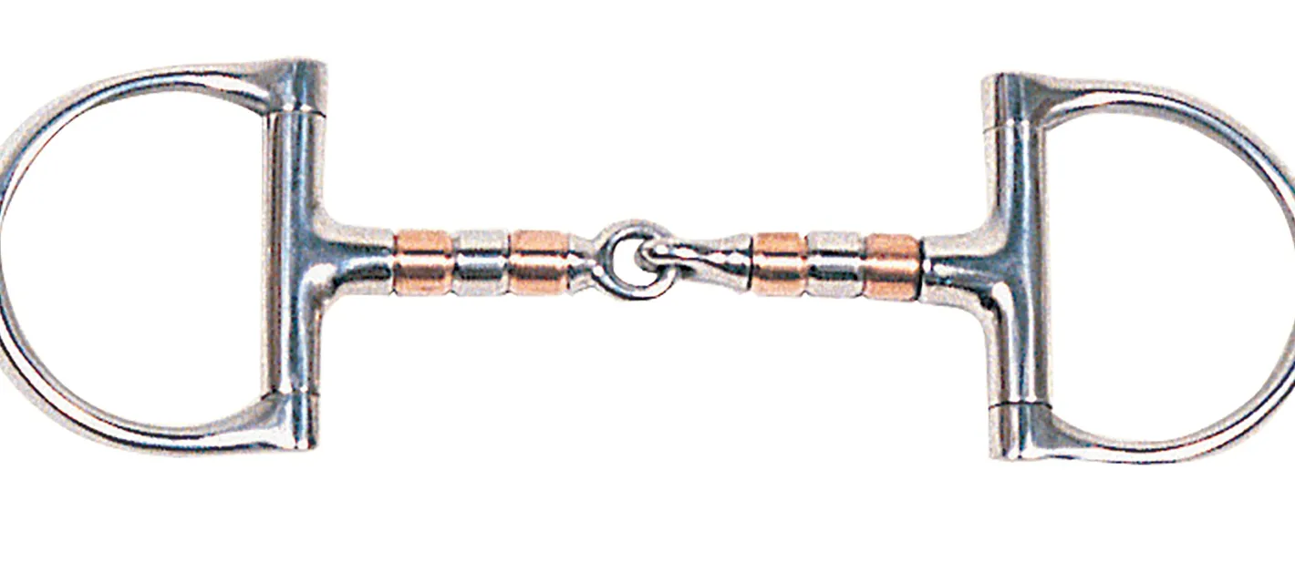 The Suffolk™ Copper Roller Snaffle D-Ring Bit is crafted of stainless steel with a mouthpiece that has copper rollers. Copper tastes pleasantly sweet to horses, which causes salivation for a moist mouth and acceptance of the bit.