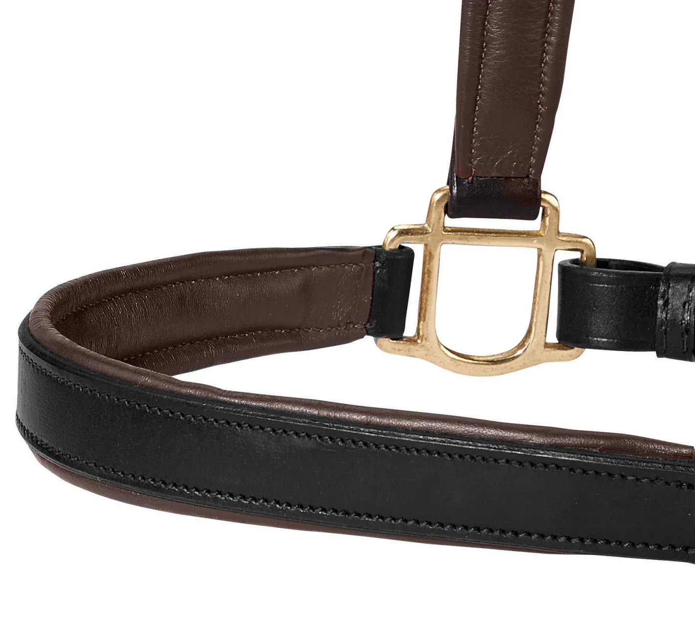 The Suffolk™ Lined Halter in doubled 1″ wide leather with solid brass fittings is durable, yet pretty. It has a classic rolled throat with snap, an adjustable chin strap and a double buckle crown. Contrast-colored leather lining on the nose and crown add a touch of softness and eye-appealing style.