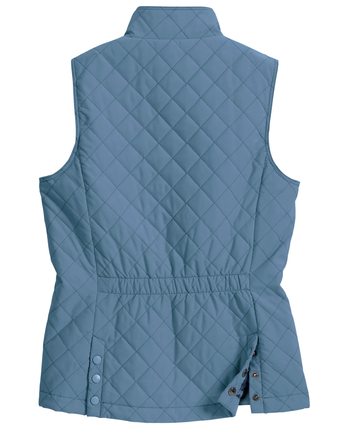 Plush but not bulky, this riding vest has an elastic-gathered belt to create a feminine silhouette. Dropped back hem has snap pleats to enhance in-saddle comfort.