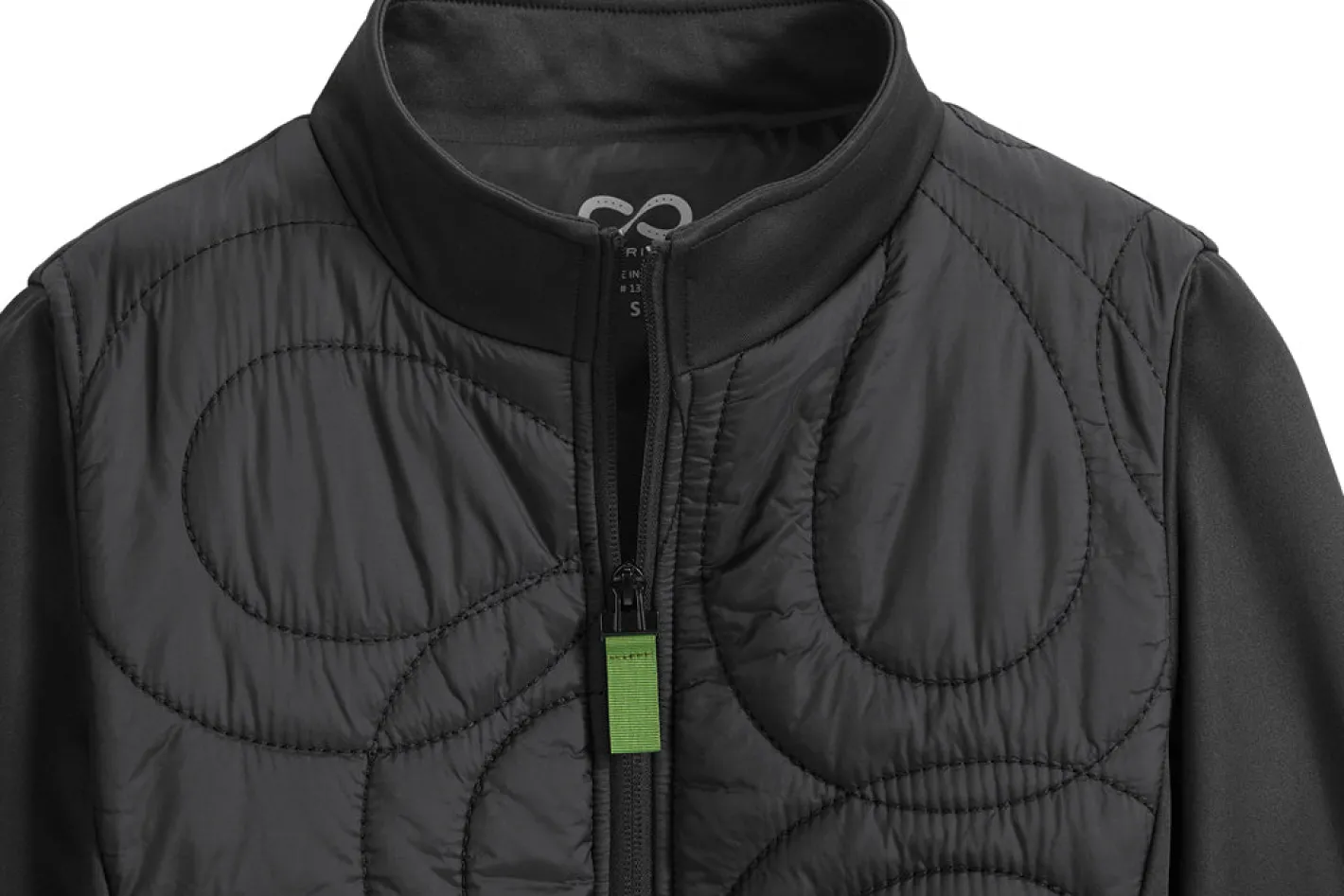 This stylish, high-performing jacket has Stride logo-quilted panels on the front and back. Side panels in extreme stretch material allow great freedom of movement.