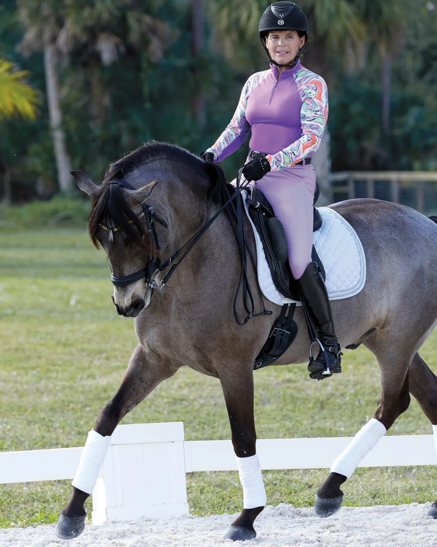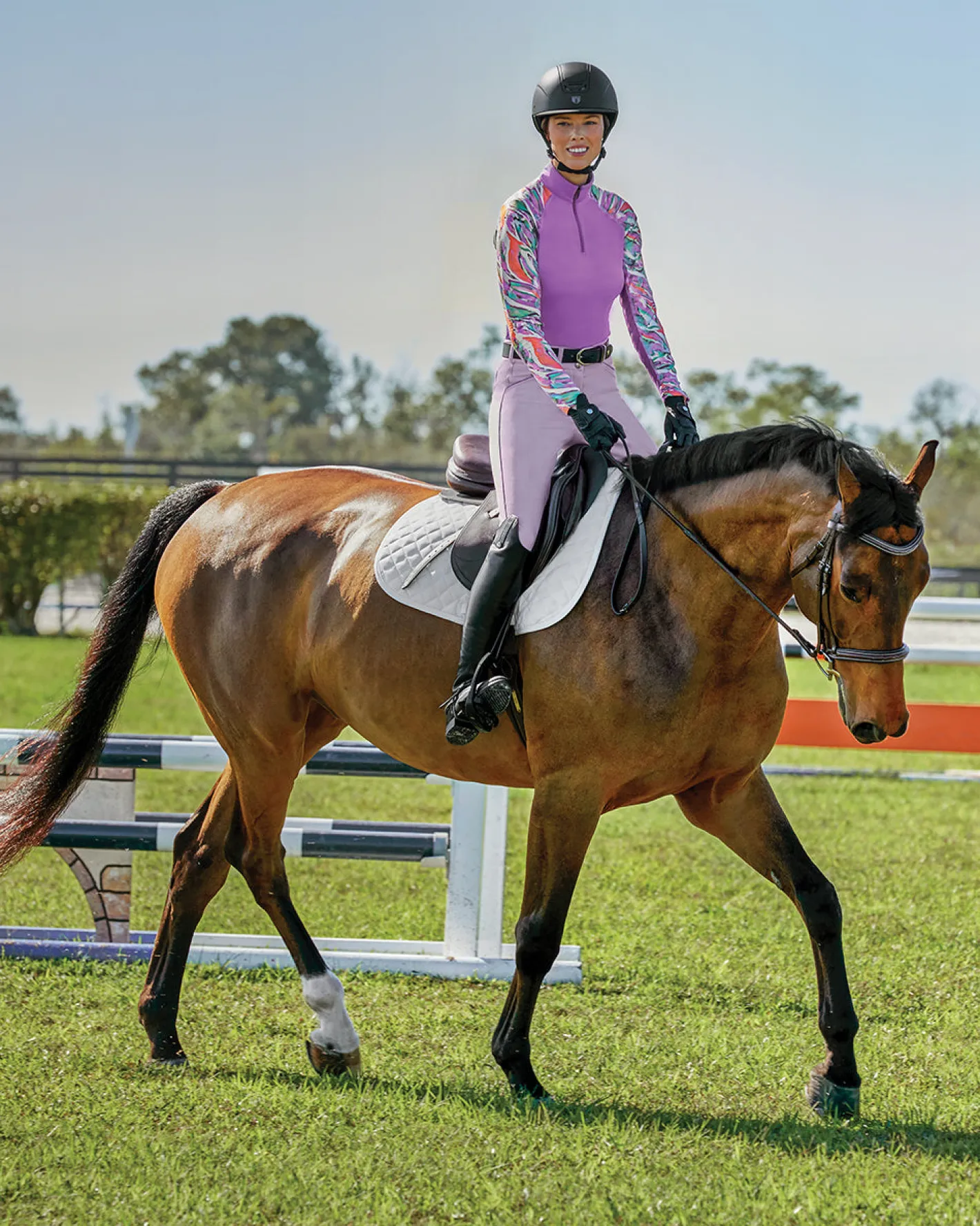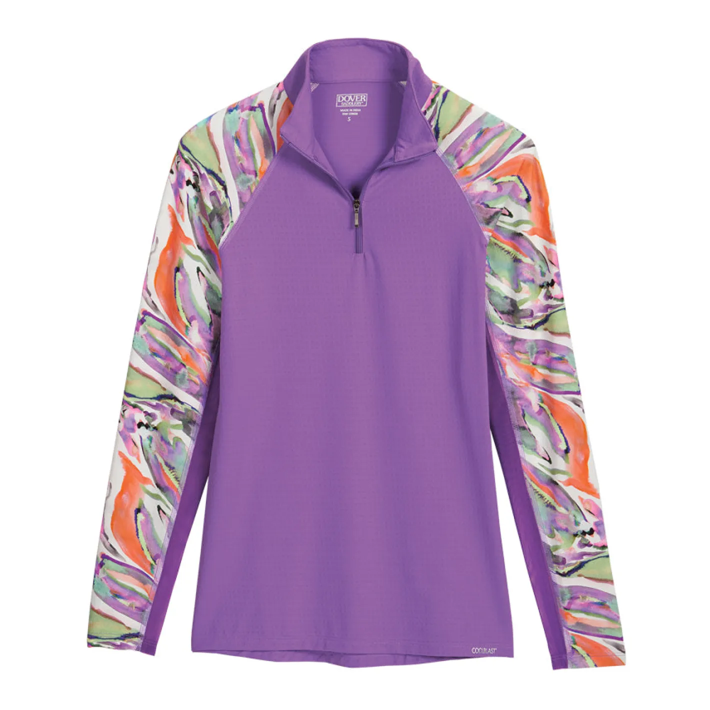 Our CoolBlast® 100 Ladies’ LaBelle Print Long Sleeve Shirt features a beautiful watercolor design on the sleeves and collar. Constructed with raglan sleeves, it offers athletically inspired freedom of movement at the shoulders. Our superior cooling fabric makes this riding top ideal on sunny days as it provides UPF 100, blocking 99.89% UVA and 99.93% UVB rays to shield your skin.