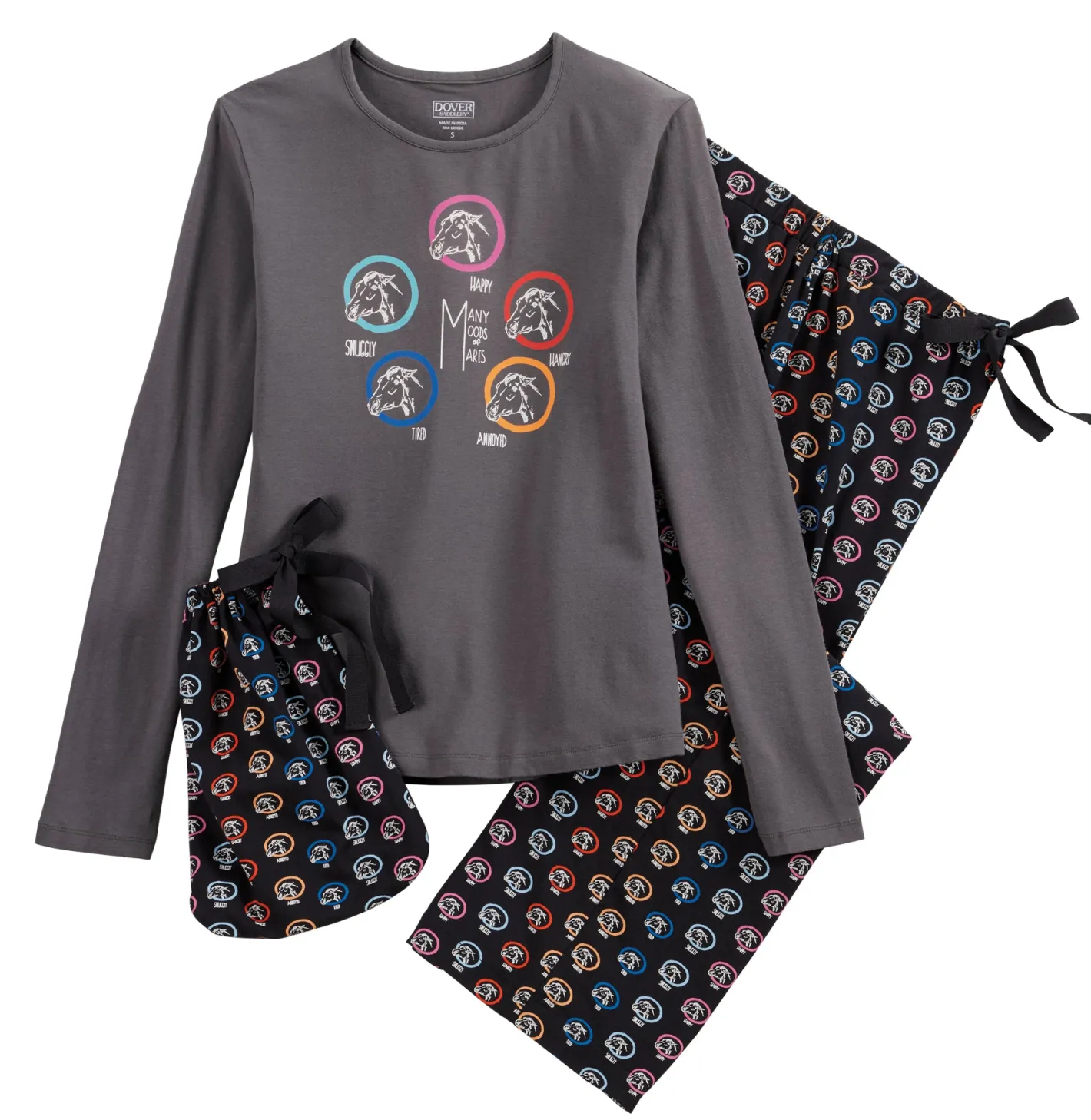 Hit the Hay Pajamas are back—in an improved, soft and stretchy cotton blend for maximum comfort. Everyone moves while sleeping, so this soft fabric will move with you! Playful and fun equestrian prints make this set a must for every bedtime. It comes with a bag for easy traveling and adorable gift-giving.