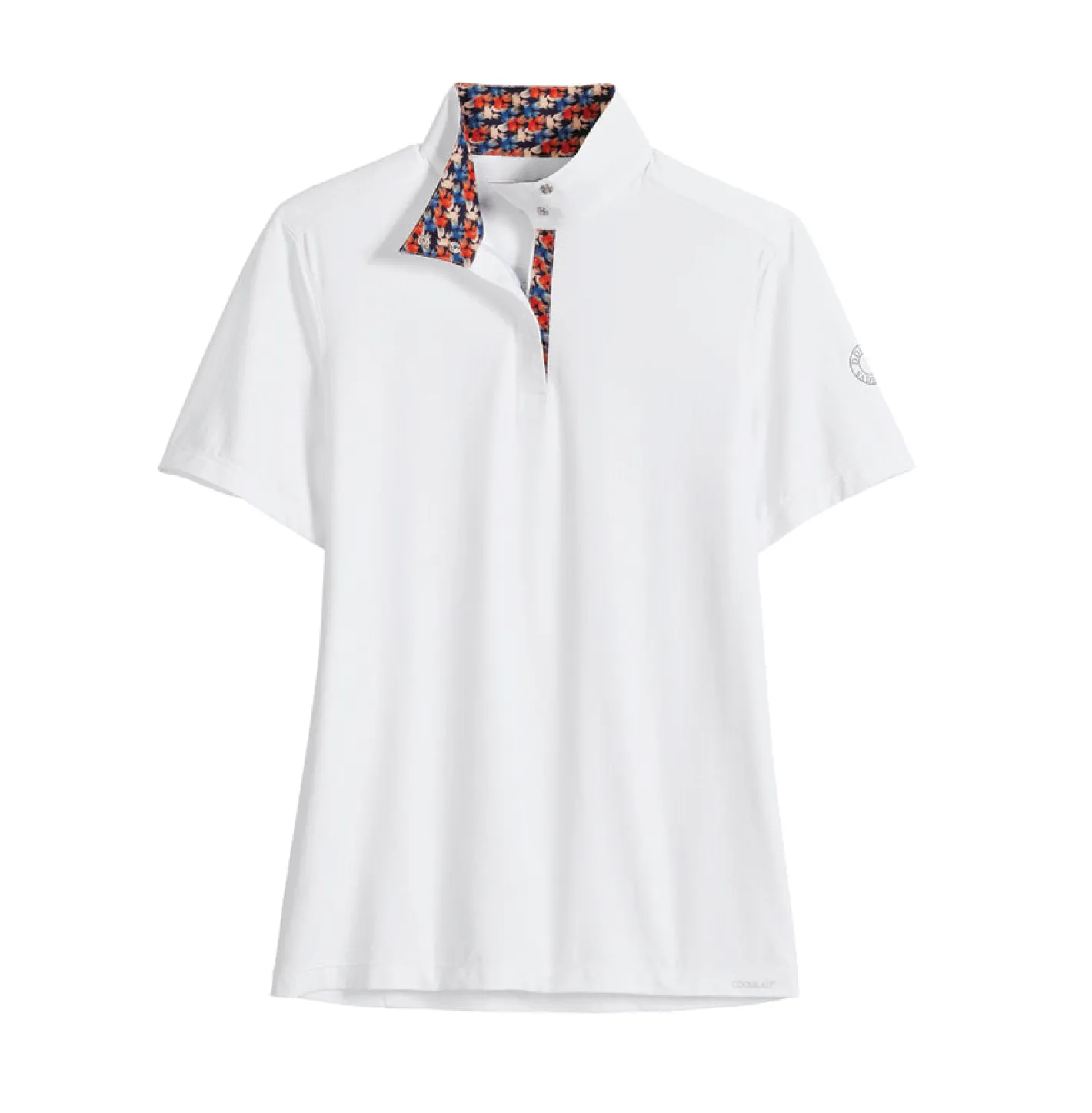 Permanent cooling properties built into the material let it outperform others in wicking moisture and converting it to a cooling energy to keep your skin dry. Because the functionality is part of the fabric, these properties never wash away. The shirt dries quickly and provides exceptional breathability for your ultimate show-day comfort. Patterned fabric inside the collar and placket adds a pop of fun when the shirt is worn casually.